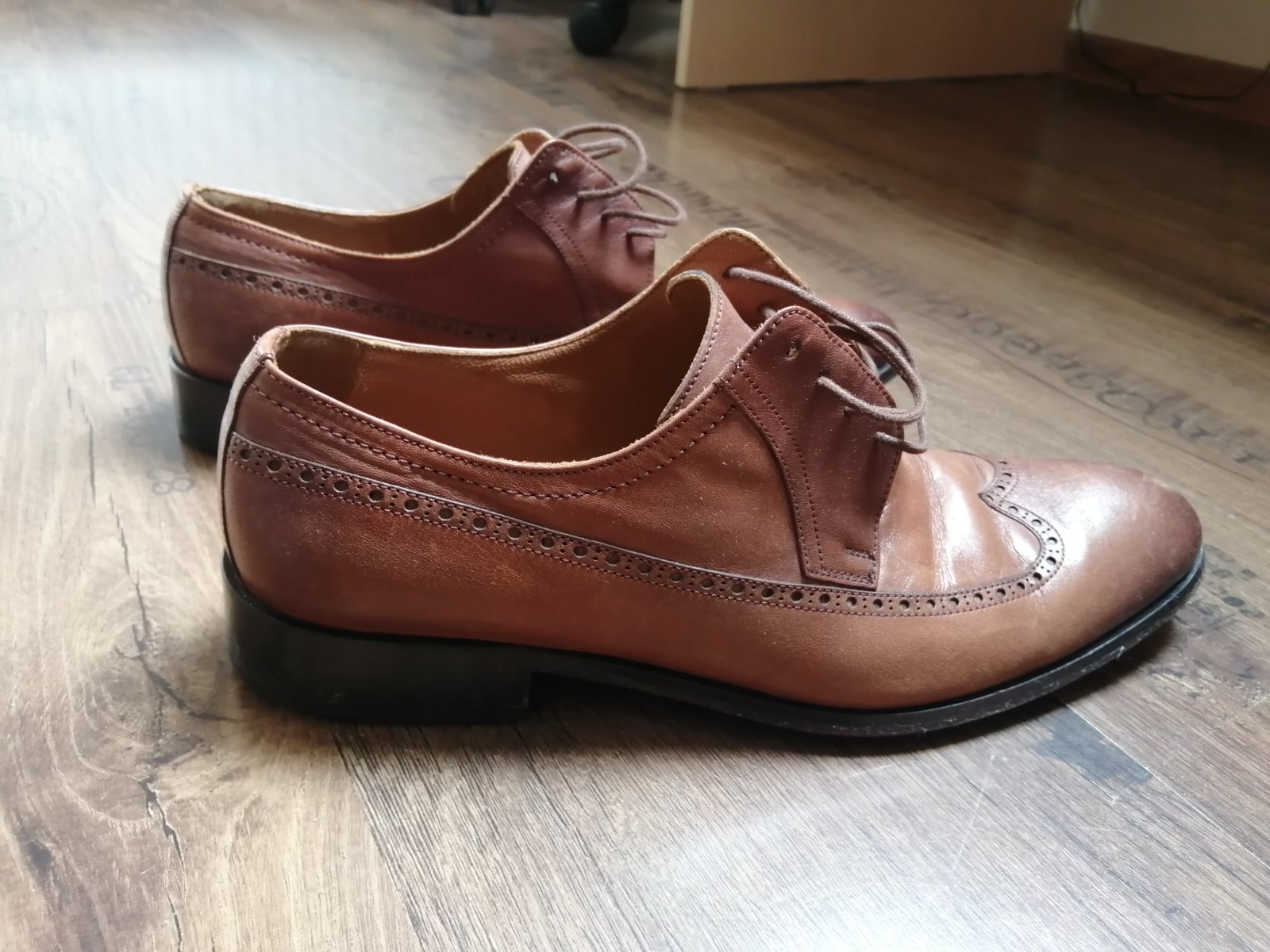 Dva-tri krát obuté topánky, perfektný stav, čisté vložky, nezakopané. Iba malé chybičky krásy, 2x na malych miestach ošuchnutá koženka a na podrážke malý fľak od pera, ale to su chyby ktoré si člov...