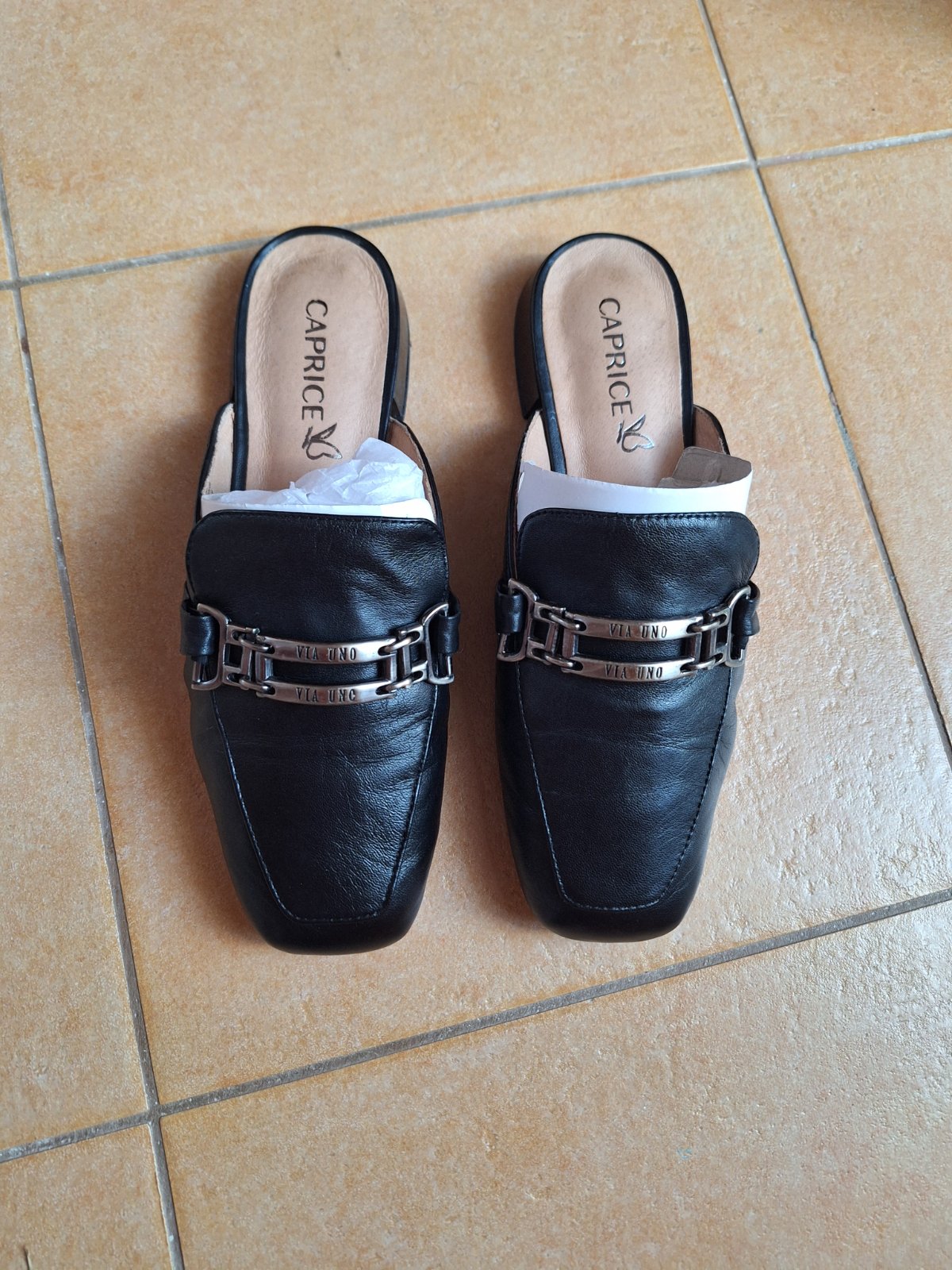 Ponúkam kožené mules šlapky zn. Caprice vo vynikajúcom stave, nosené len parkrat v kancelárii ako prezuvky. Bez poškodení. Odporúčam.