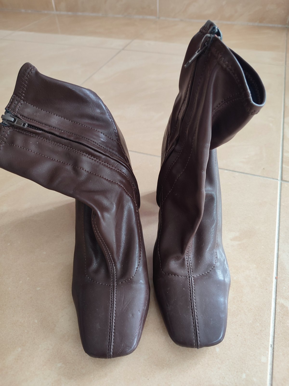 Používané,na bordovych opätkoch maličký oderok,(viď foto) cena za kus