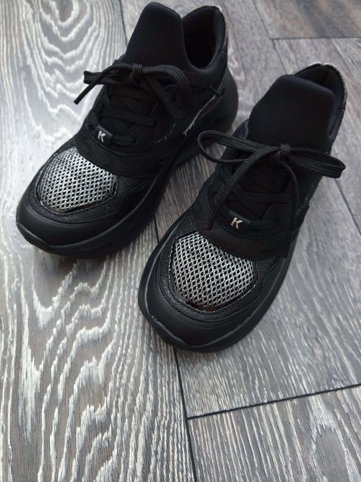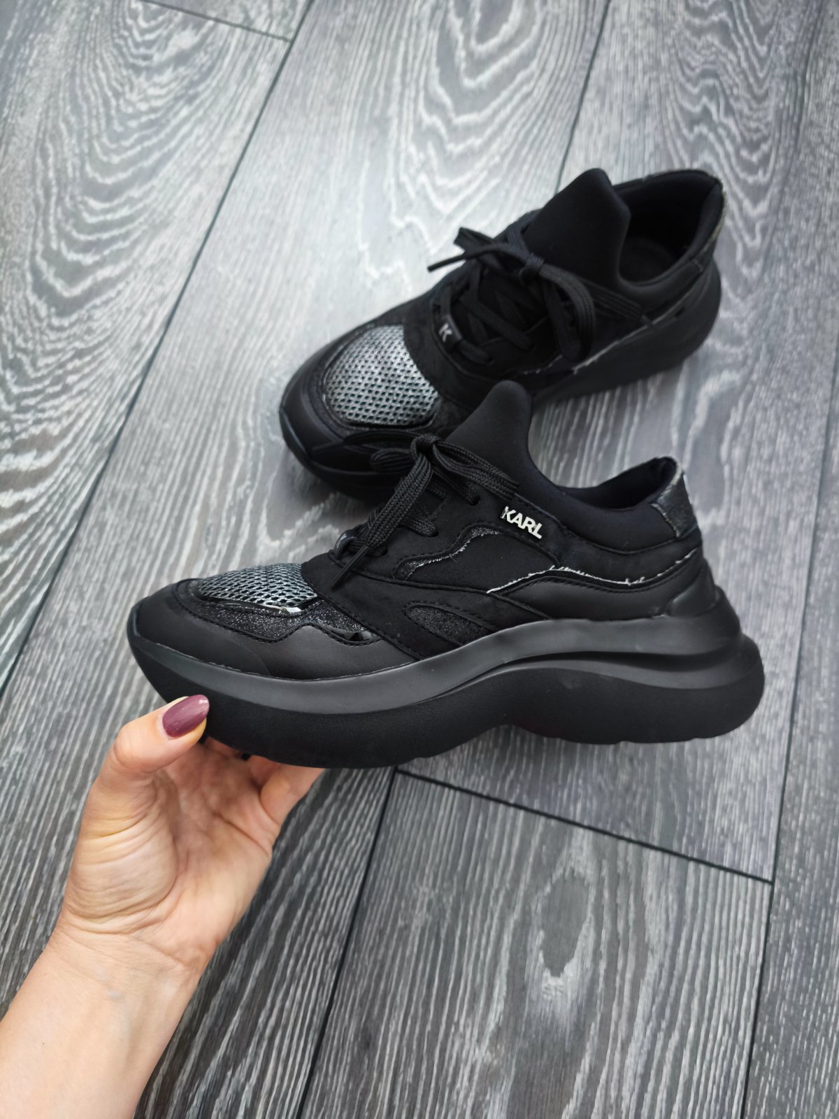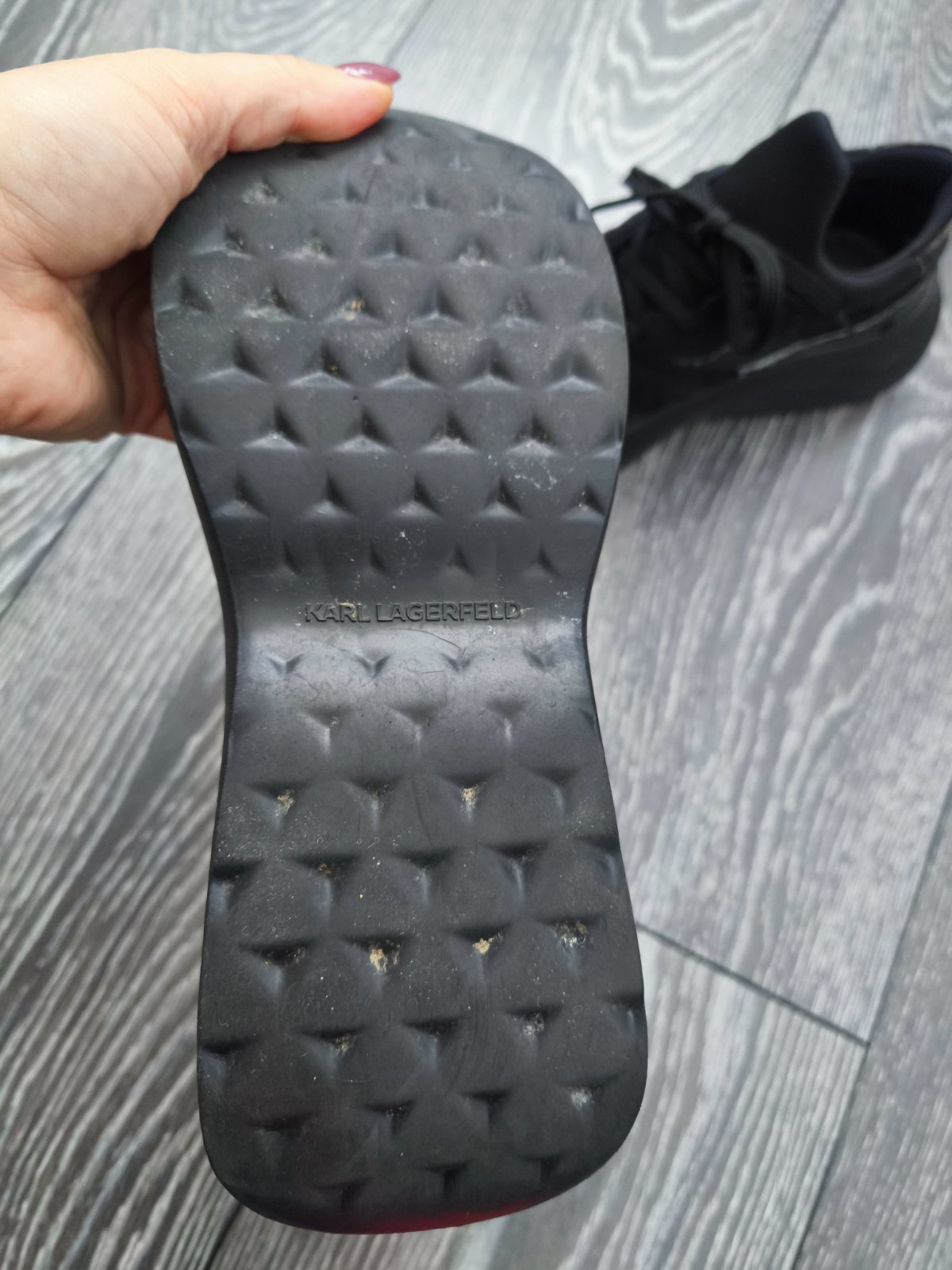 Krasne kvalitne velmi pohodlne sneakers tenisky KL nosene malicko v top stave bez ziadneho poskodenia akurat vzadu ako je pata na jednej mala chybicka krasy vid foto no nic vazne. Velkost 35 obuje aj menaia 36. Povodna cena bola vysoka.