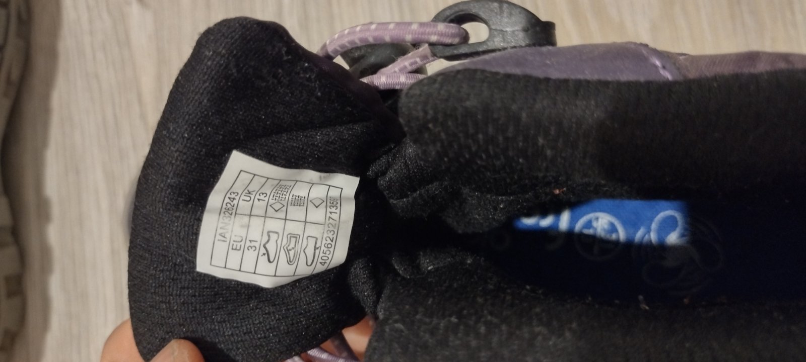 Čižmičky bledofialovej farby. Sú osuchnute. Viď foto. Vnútri len fleece.