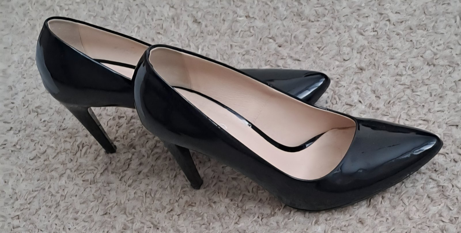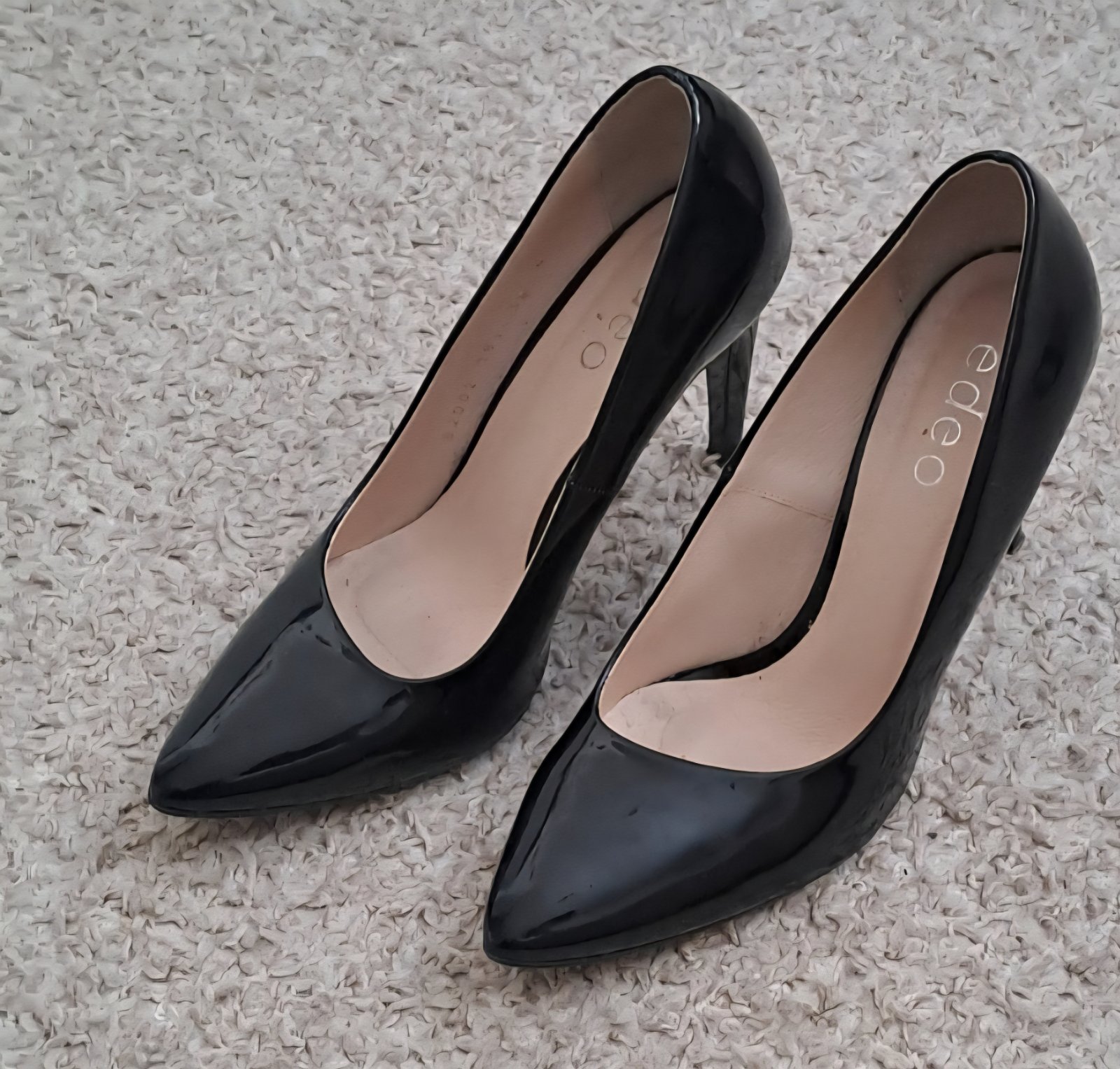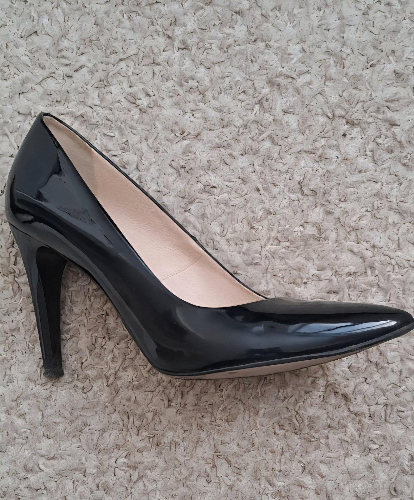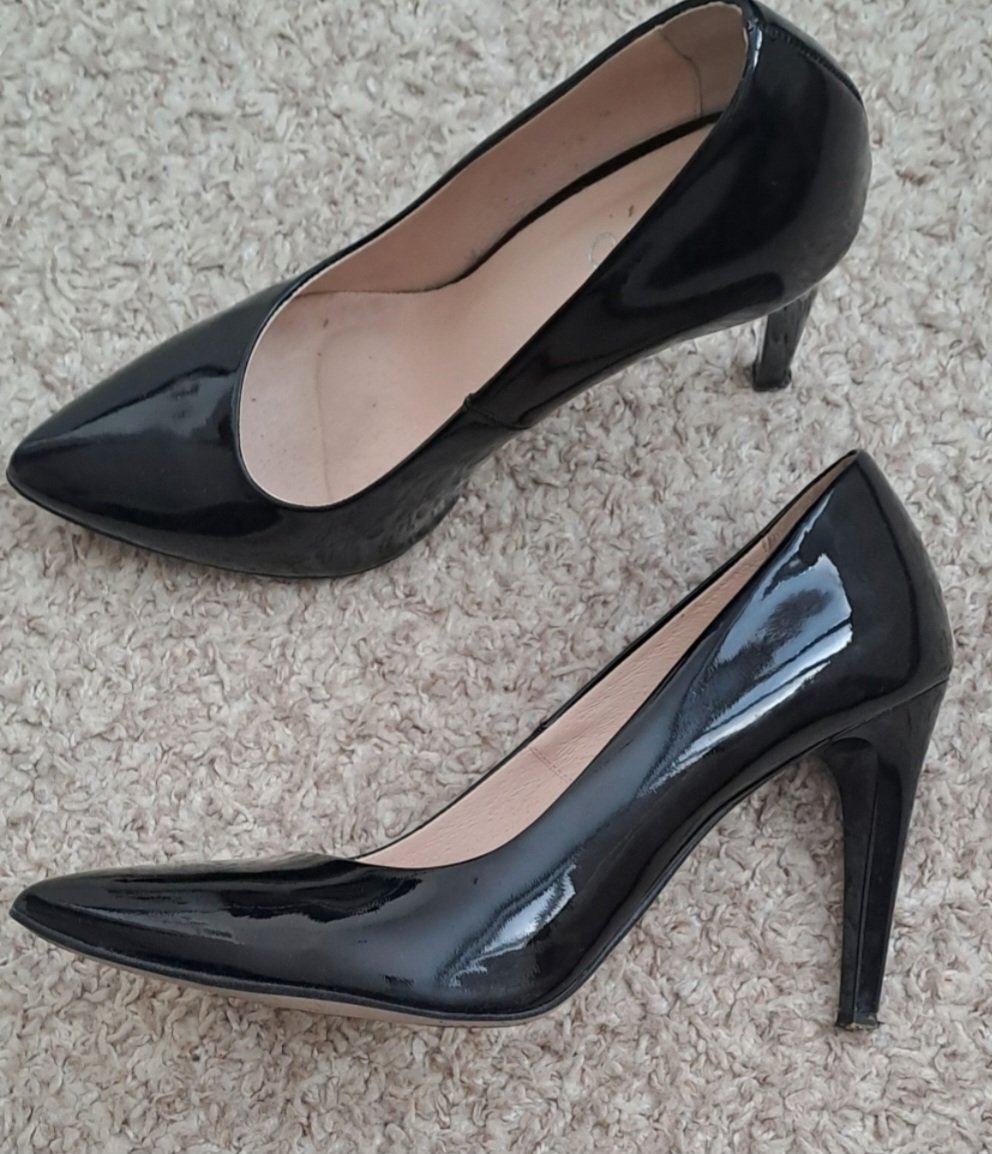 Cierne lakované kozene lodicky,obuté max 2xkrat