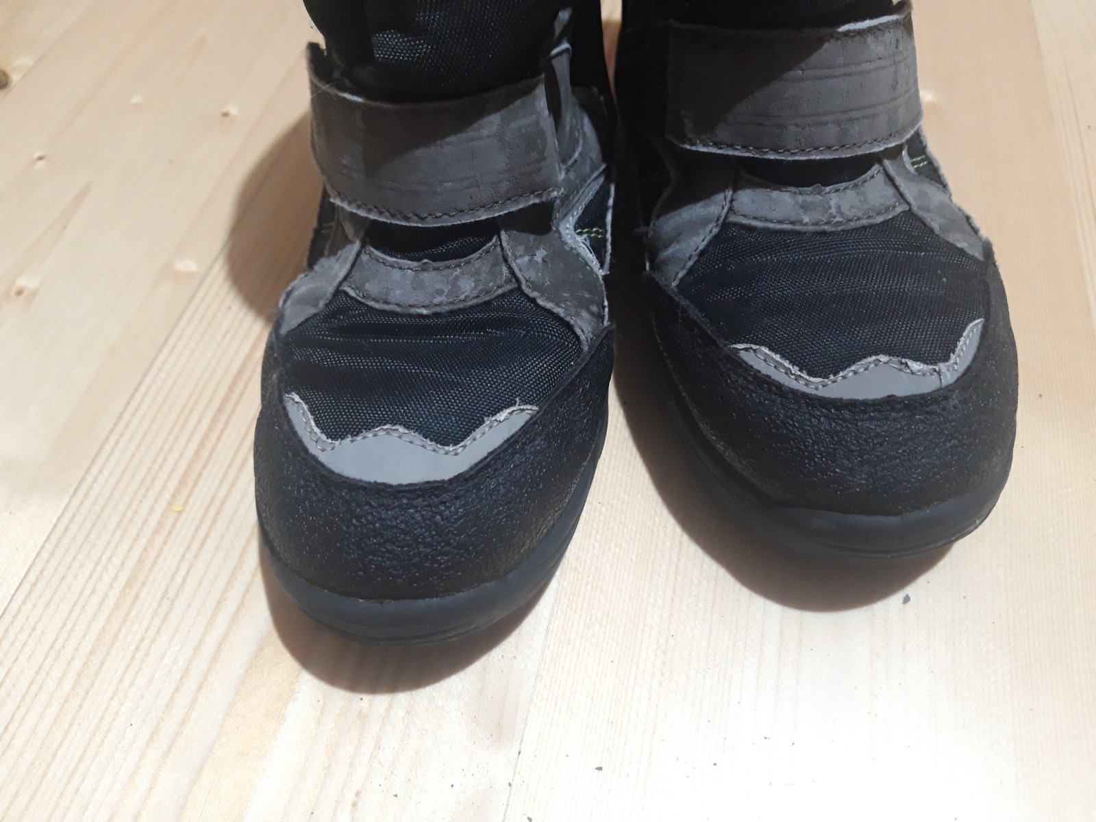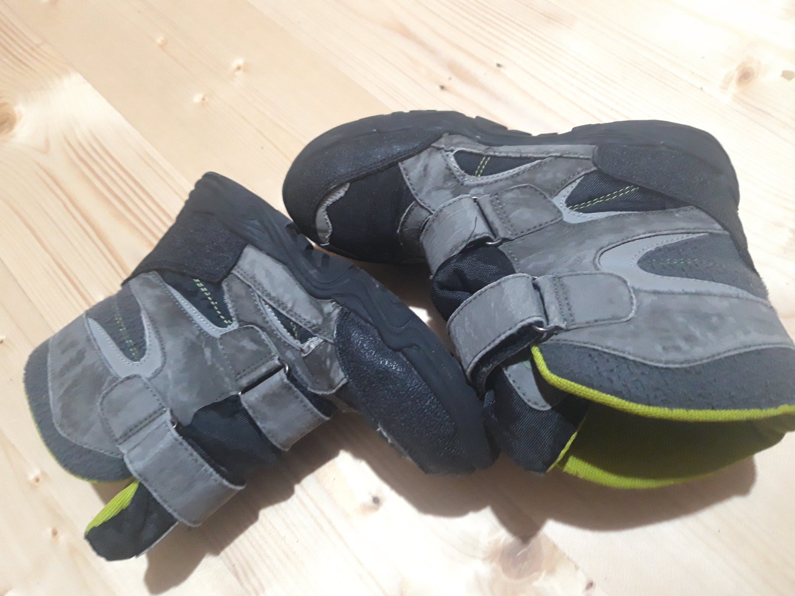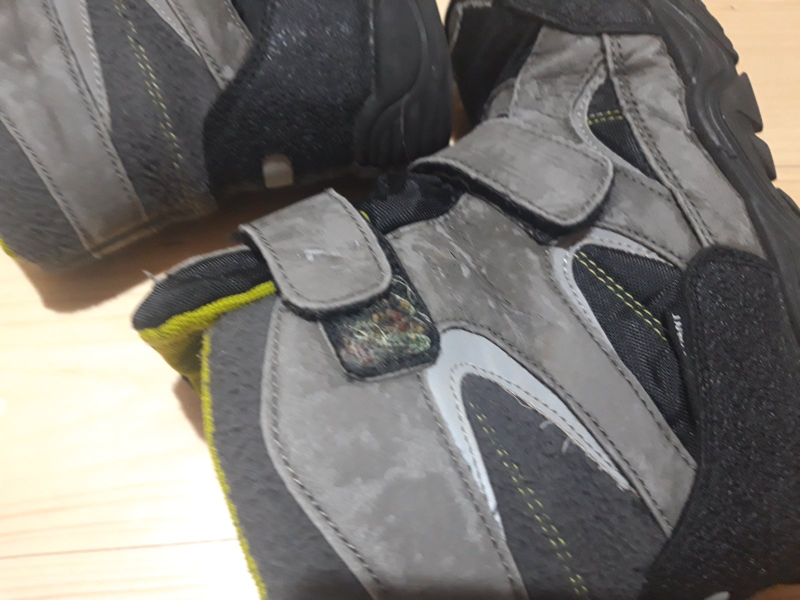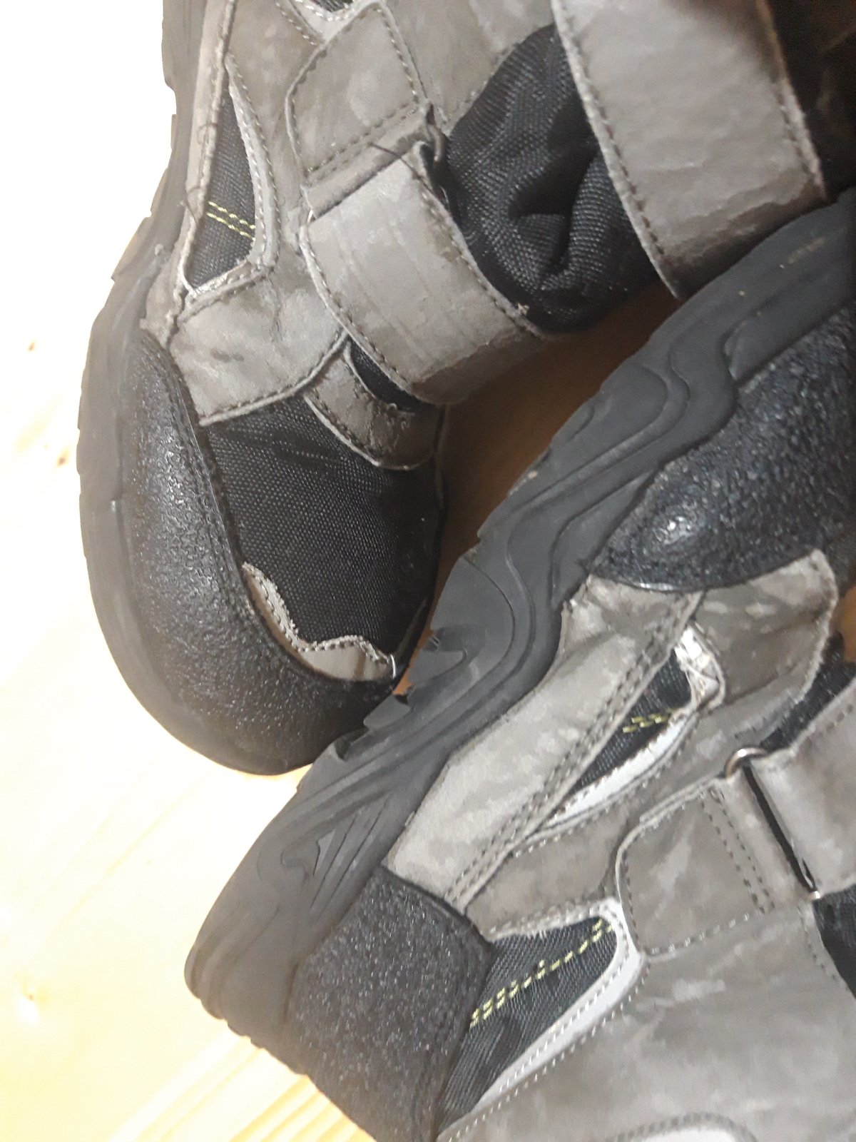 Čižmy sú nosené viac, sivá farba vyšúchaná od vody aj prania/viď fotky/,vo vnútri nepotrhané, na niektorých miestach akoby sa začínali odlepovať,možno ešte do suchej zimy,darujem za poštovné