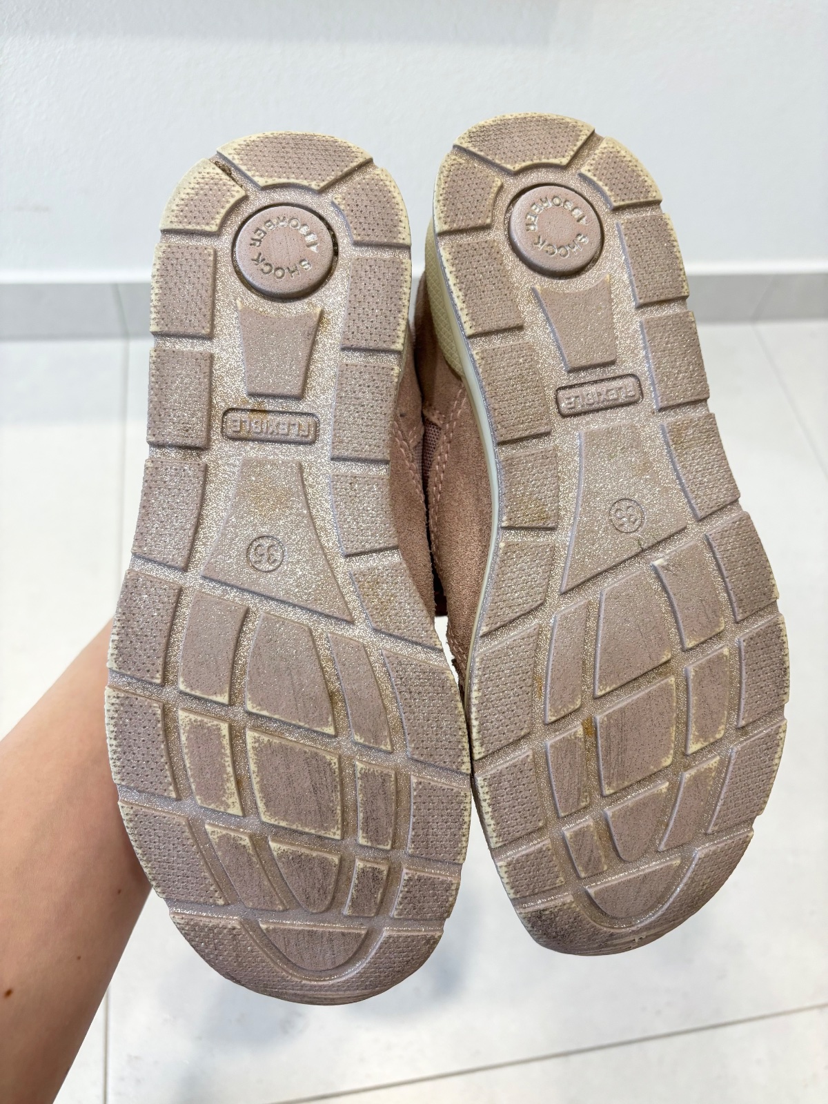 Zateplené tenisky. Nenosené. Dostali sme ich, dcérke rýchlo narástla nôžka. Keď už bolo chladno, boli jej malé. Preto posúvam. Sú ľahučké, pohodlne