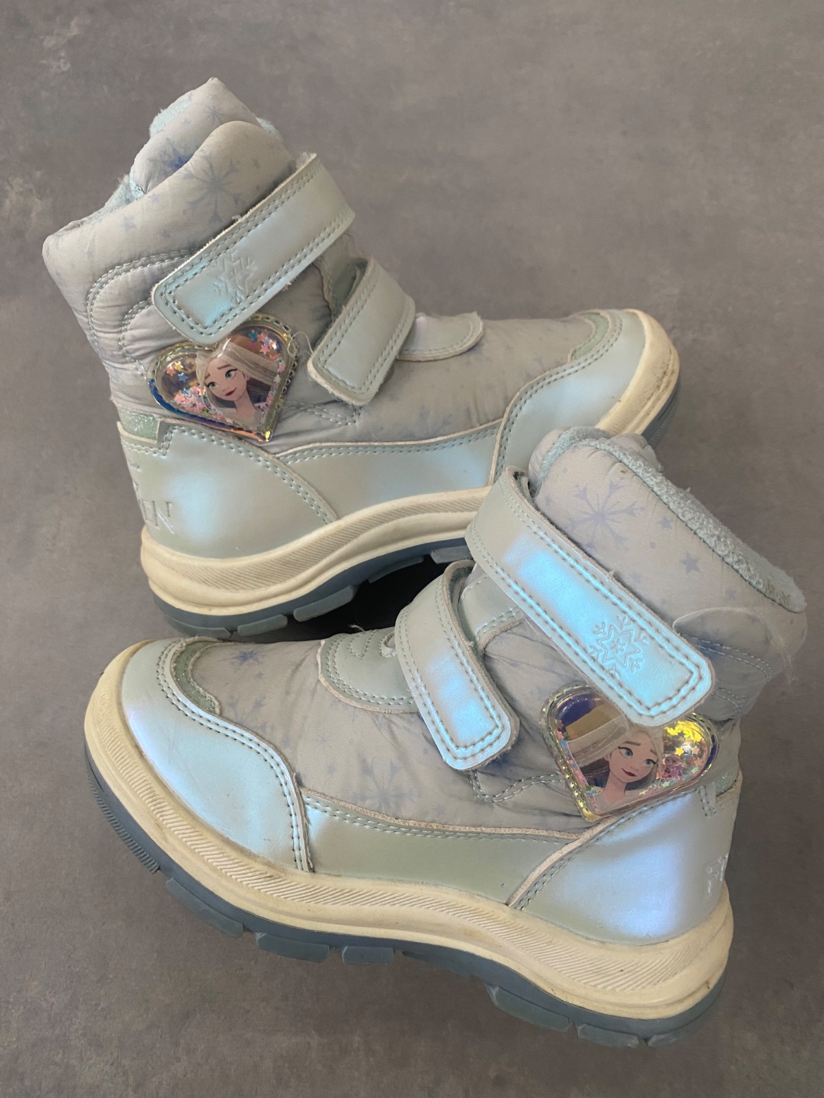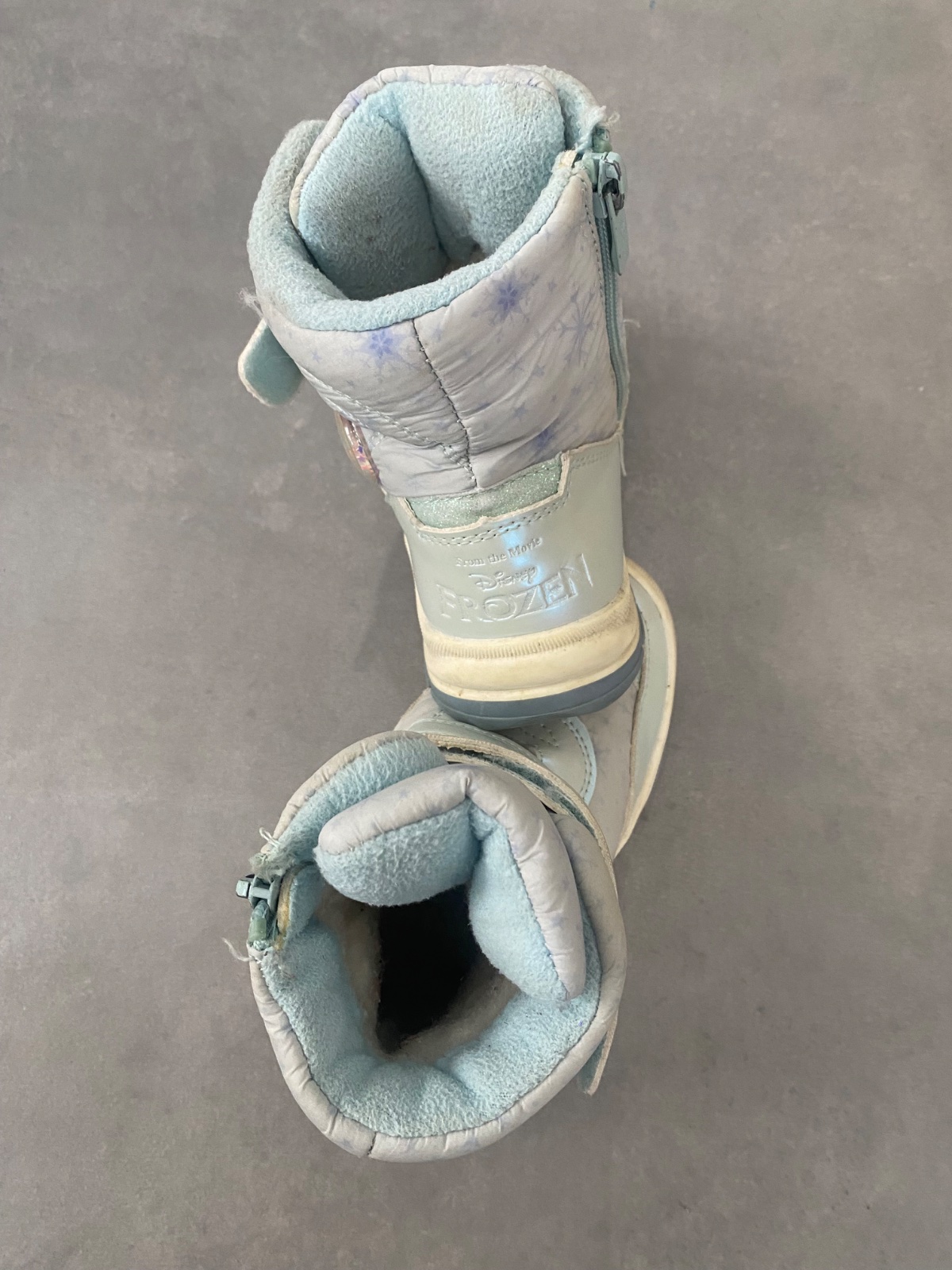 Zimné snehule Frozen sú celé vyteplené. Na pravej topánke je v prejdú menší skrabanček. Viditeľne len z blízka