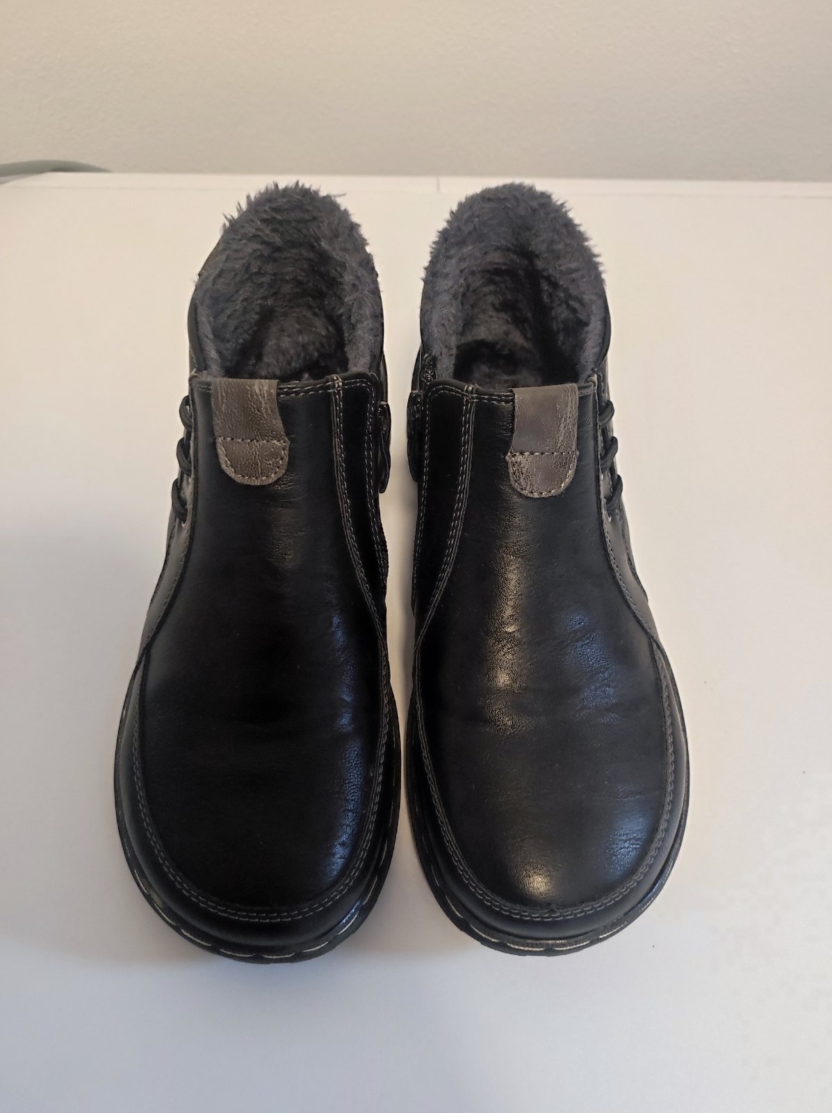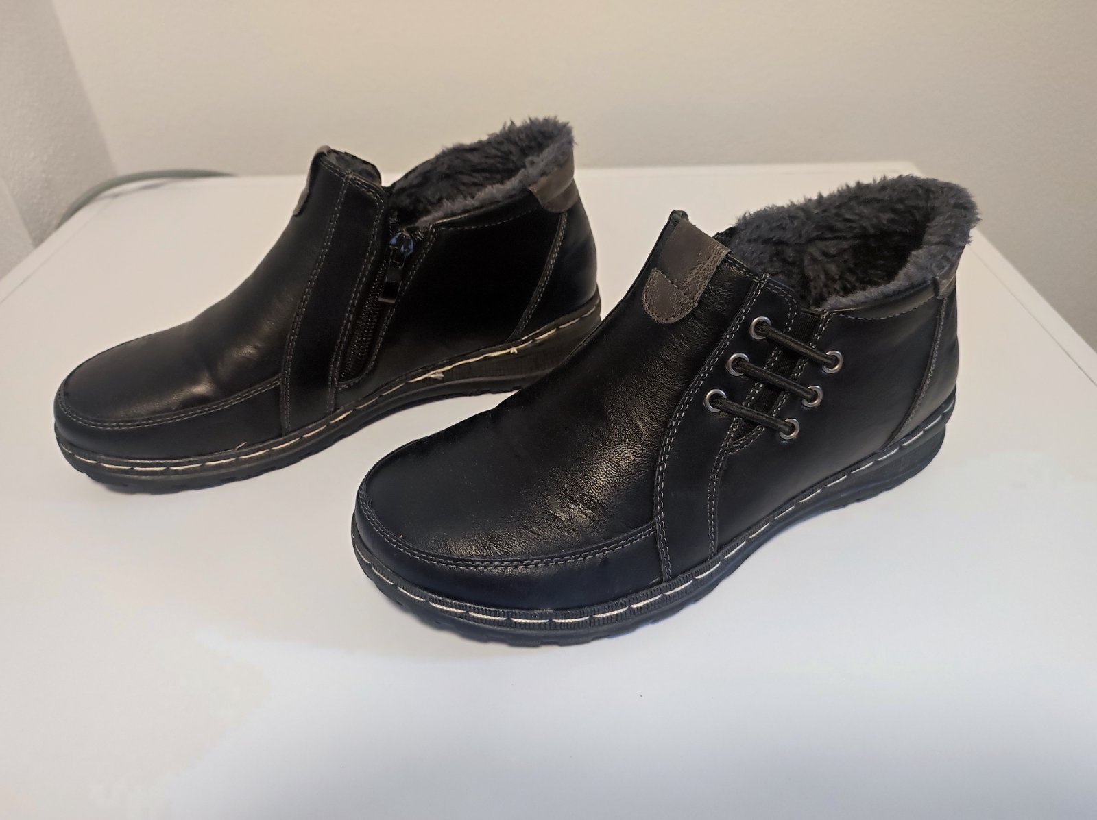 Nenosené kvalitné kožené topánky s vnútornou kožušinou, veľkosť 37. Kupované v Poľsku. Syn ich odmietol nosiť, stačil jeden spolužiak, ktorý ho vysmial a bolo vybavené.