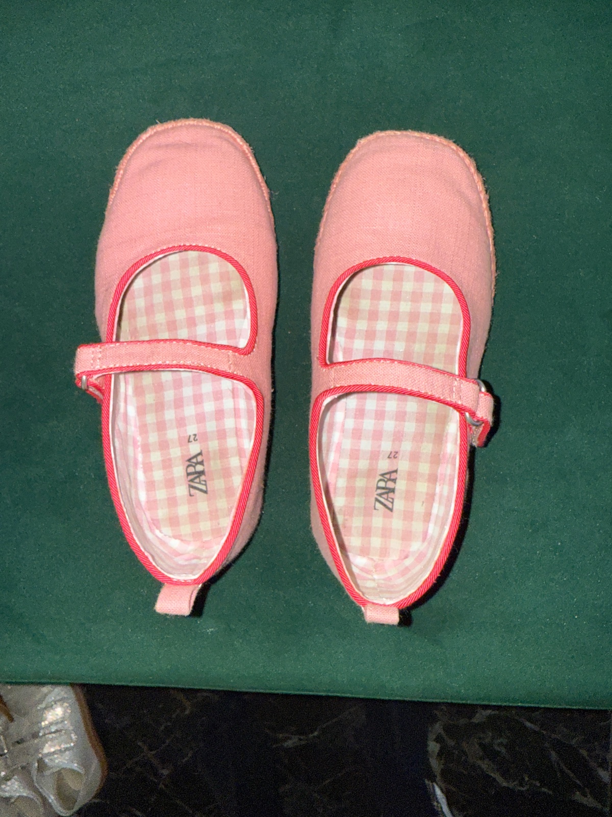 V dobrom nosenom stave. Trblietavé. Vzadu som odstrihla šlupky čo tam trčali. Na pravej topánke sa začala párať gumka, viď.foto Vnútorná dĺžka: 17cm Treba ich vyčistiť.