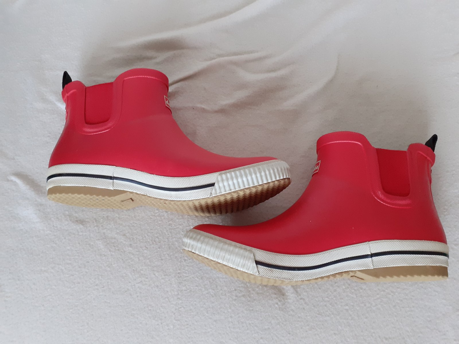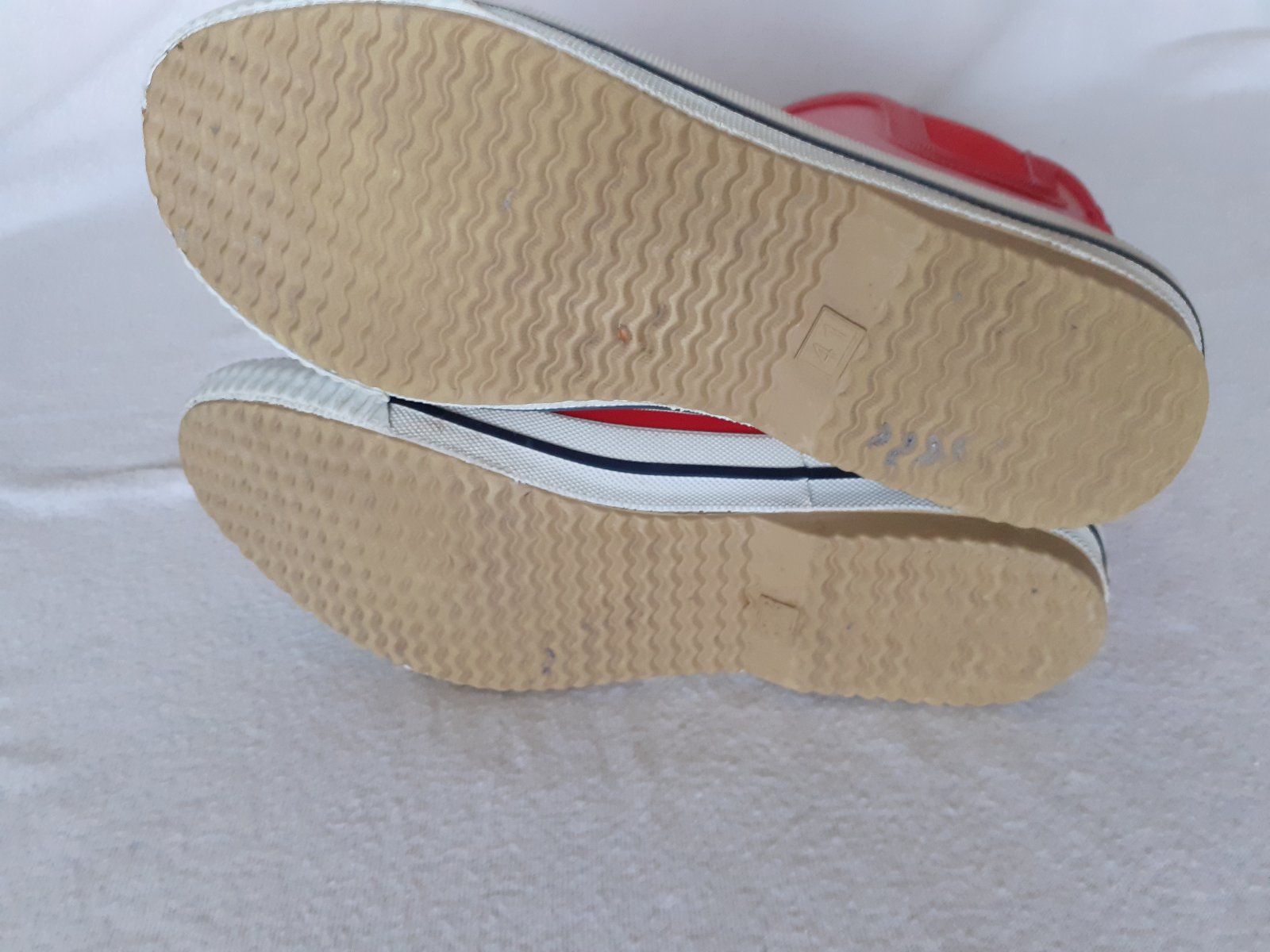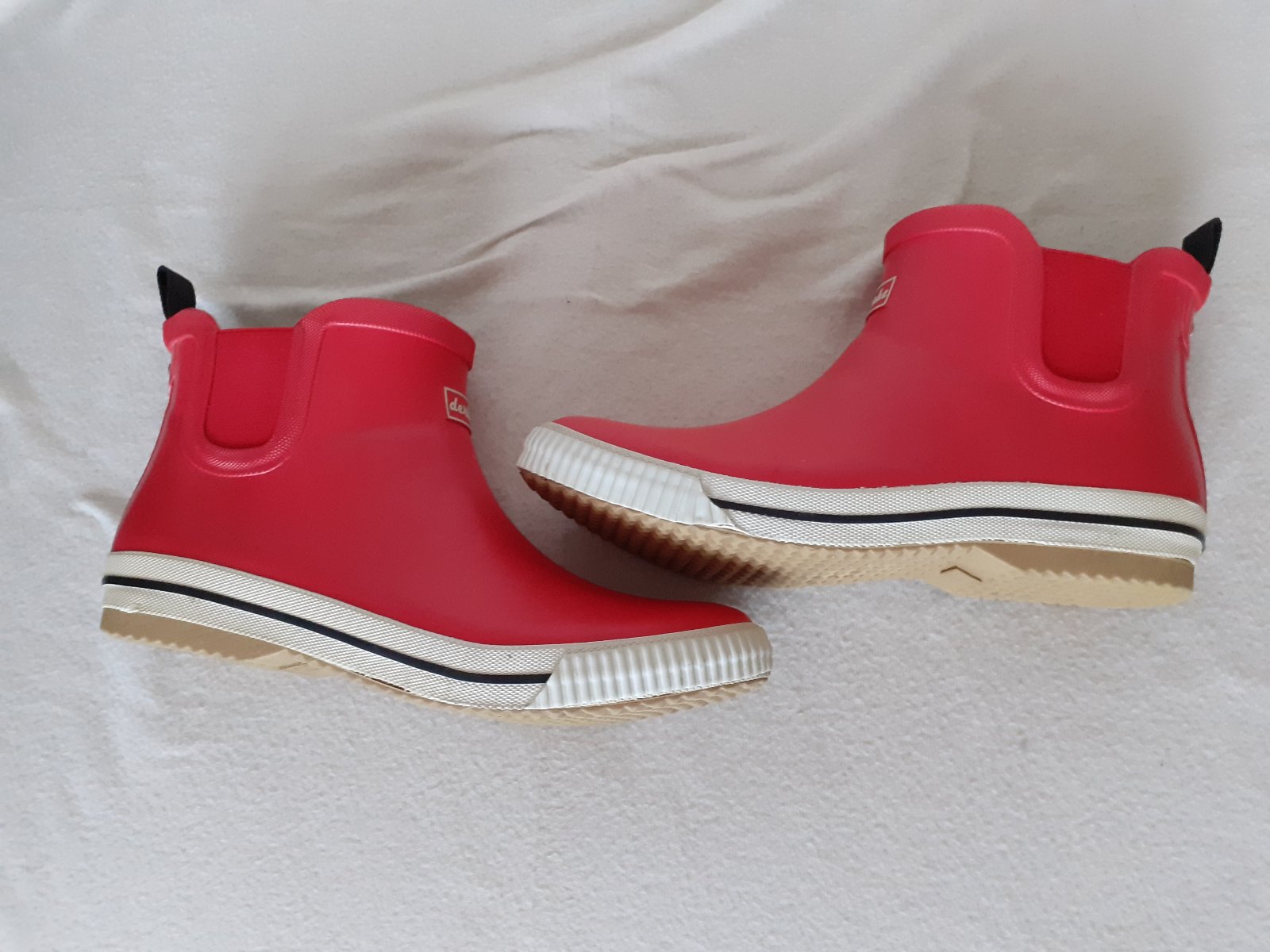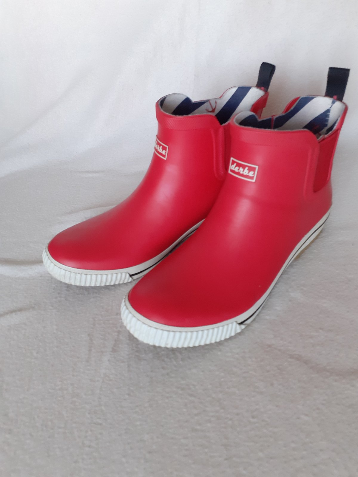 Predám 1x nosené/odskúšané dámske nízke červené gumáky DERBE č.41 viď. foto. Dĺžka vnútornej stielky je 26,5cm. Gumáky sú v stave - ako nové. Cena 12e + poštovné/osobne v Bratislave.