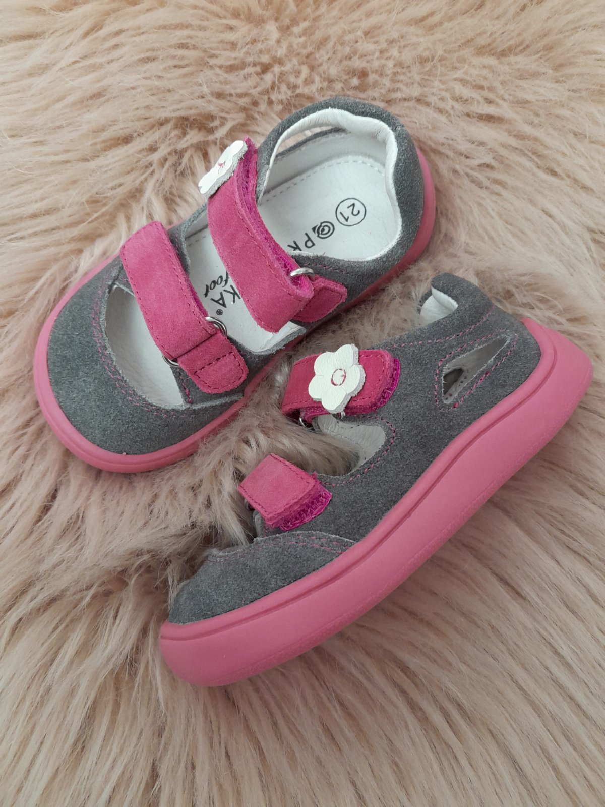 Dievčenské kožené sandále so zapínaním na suché zipsy celokozene značky protetika barefut