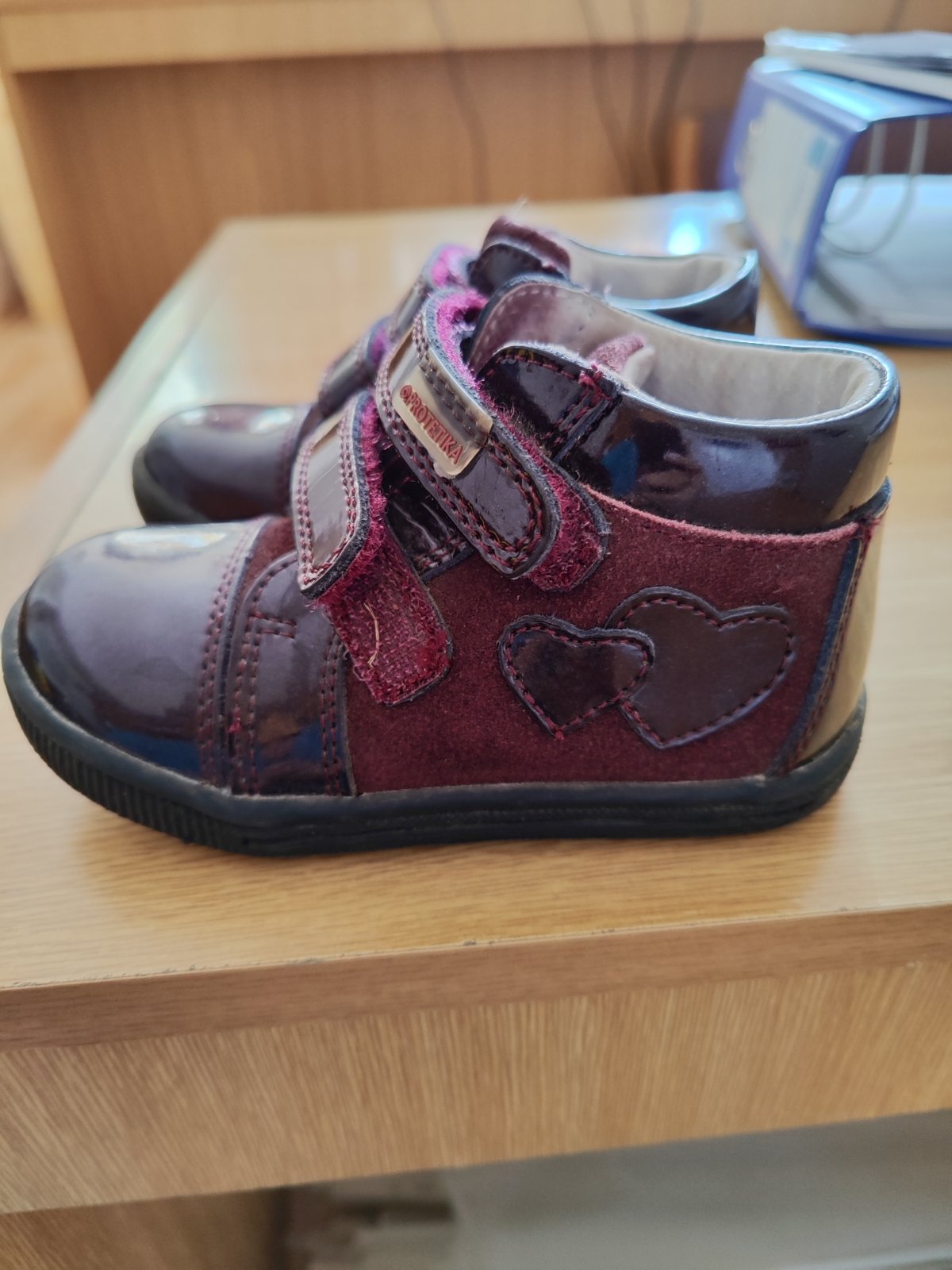 Kvalitne kozene topanocky vo velkosti 22 zakupene v Protetike, takze kvalitne a vnutro je s klenbou. My sme ich zboznovali, hoci sme mali este asi 3 pary, takze su vo velmi zachovalom stave a urcit...