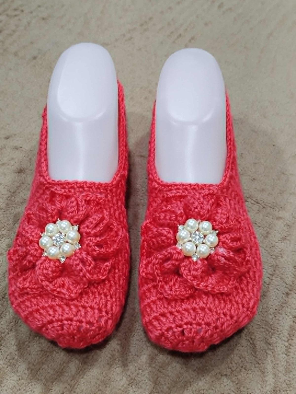 Háčkované papučky pre domáce pohodlie :) ... s ponožkami aj bez ponožiek dobre držia na nohe, papučky sa prispôsobia Sú mäkučké, teplučké :) Vhodné aj ako milý darček pre blízku osôbku :)