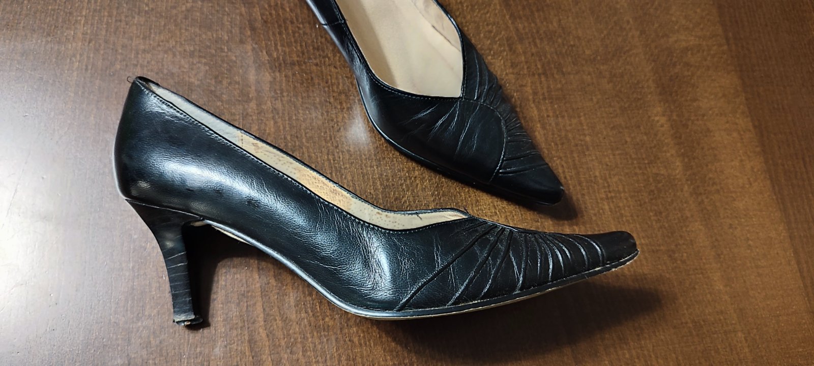 Čierne kožené lodičky. Vnútro tiež koža. Nosené už dávnejšie, párkrát obuté, je treba vymeniť podpatníky.