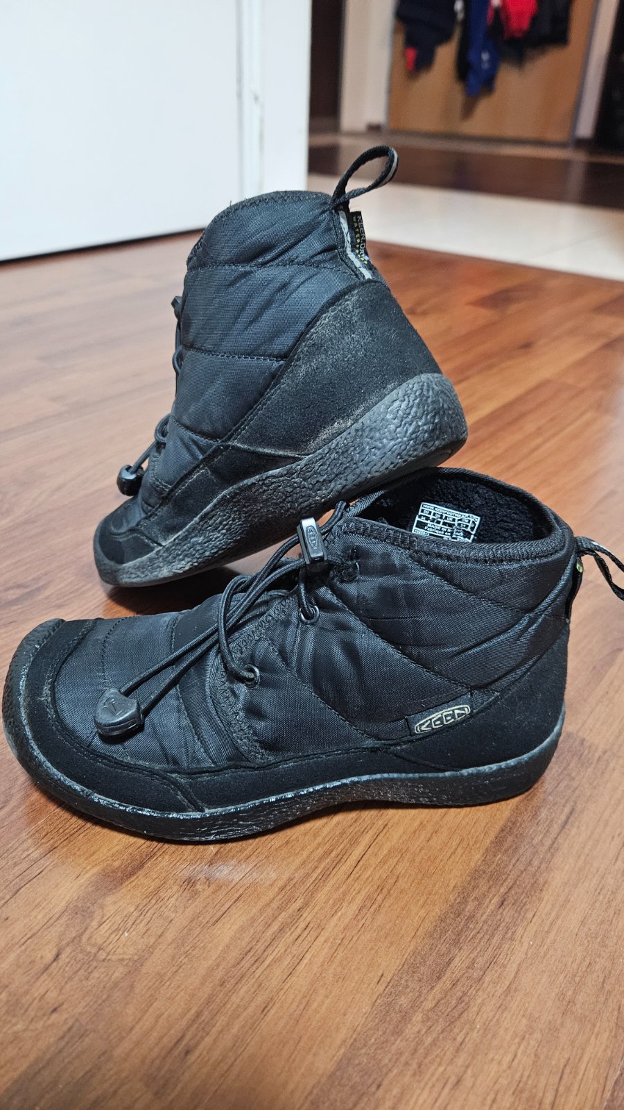 Vodeodolne krasne topanocky Keen Howser, vhodne do teploty -23C. Nosene kratko, jedina cbybicka krasy je na 1 snurke kusok rozstrapateny/odrty, vid foto.
