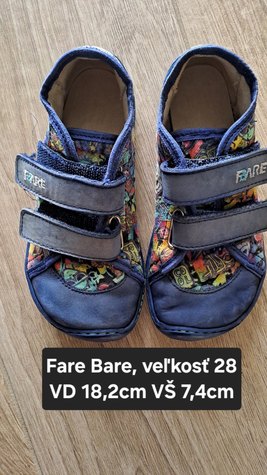 Predám plátené barefoot tenisky Fare Bare modrý tweed. Veľ. 28, VD 18,4 cm, VŠ 7,6 cm. Vhodné na nôžku plutvičku. Nosené jedným dieťaťom. Sú bez poškodení, vo veľmi dobrom stave.