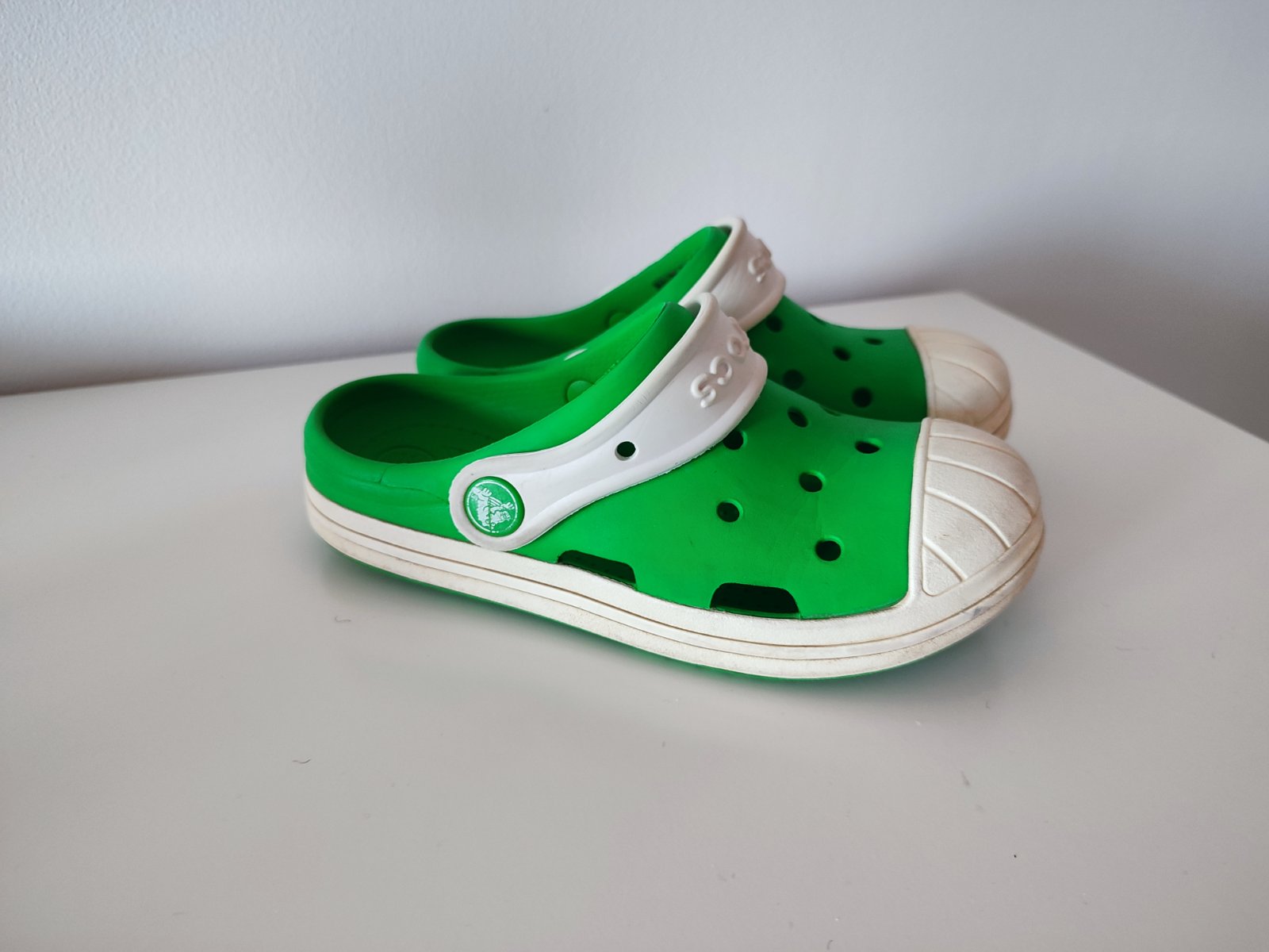 Originál Crocs šľapky.. mega kvalitné...stále ako nove a to ich dcéra nosila 3 roky a ani to nebadat, viď foto .. kupované boli ako nové. Veľkosť 12 čo je veľkosť 29/30... tak aj sedeli Cena u...