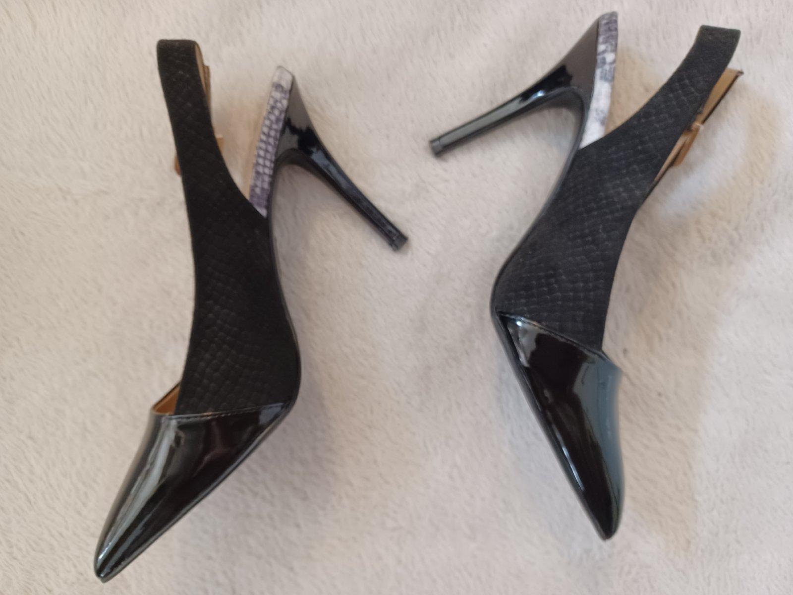 S ťažkým srdcom ponúkam krásne lodičky len skúšané po dome.Pri kúpe sa mi veľmi páčili ,ale je na mňa príliš vysoký opätok.Veľkosť sedí,sedia na dl.nohy 25,5cm.V ponuke mám aj iné topánky na poslednej fotke.