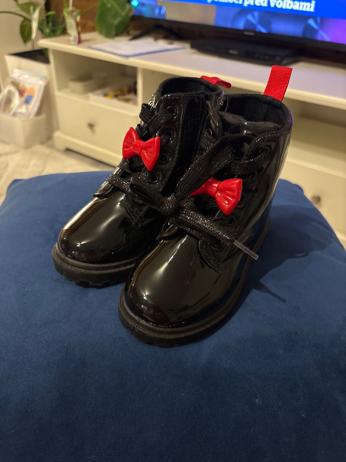 Topánky sú nosené, ale veľmi zachovalé. Nemajú žiadne poškodenia, iba suché zipsy držia slabšie. Mierne zateplené, nohu držia v suchu, nepremokajú. Vnútorná dĺžka 16,5 cm.