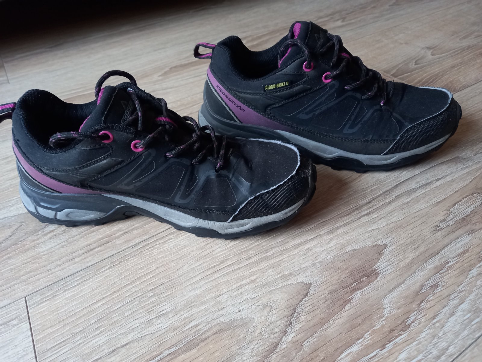Predám softshelové turistické tenisky zn. Crossroad (kupované v Sportisime), nepremokavé, veľkosť 36, výborný stav, neschodené, bežné známky nosenia, málinko šuchnuté špičky, inak bez poškodenia. Sú pevné a ľahké, ideálne na turistiku, nepremokavé. Majú všitý jazyk po celej dĺžke.
