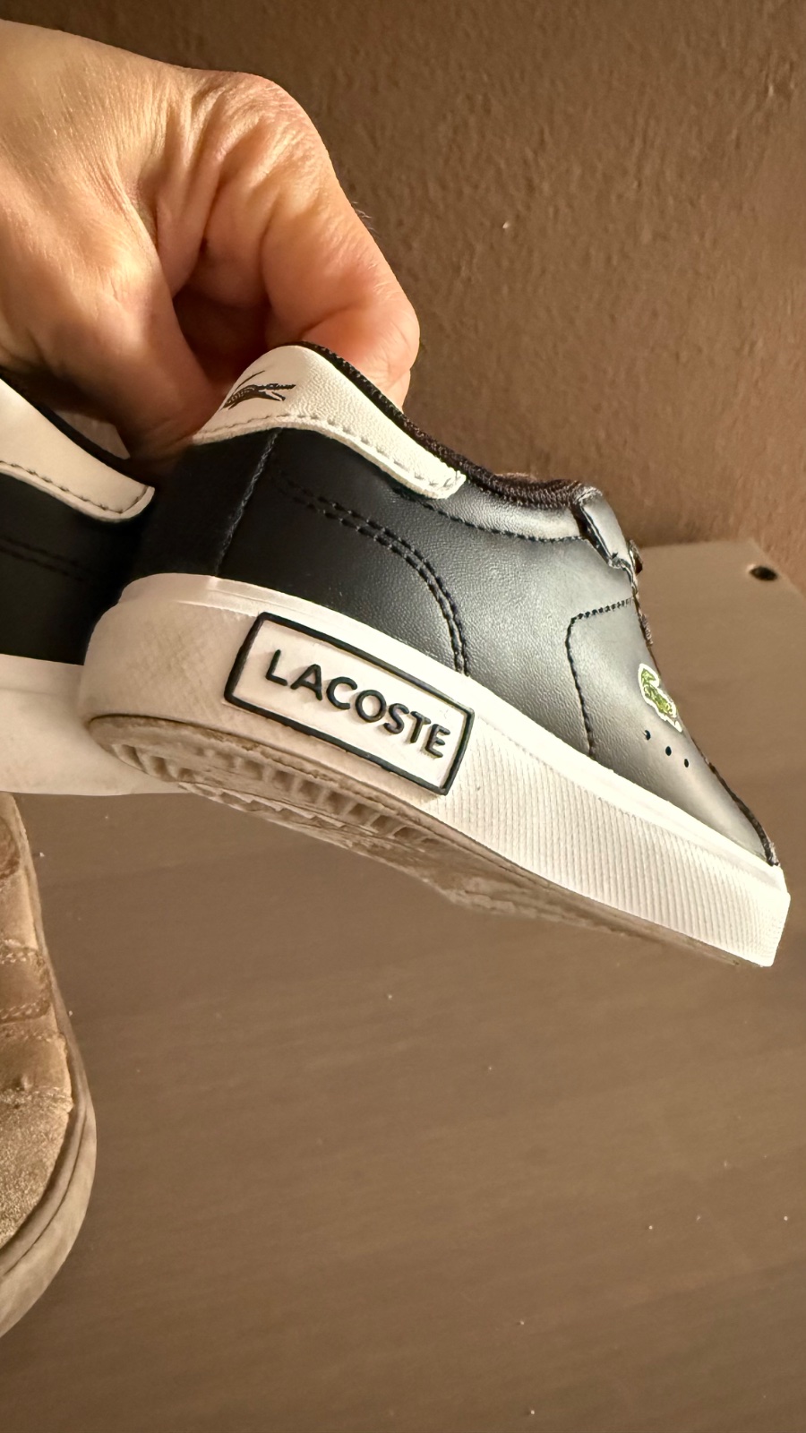 LACOSTE peckové kožene tenisky vo velkosti 24, v original krabici, bez poškodení, na nohe ich mal malý len dvakrat, takže super stav, vnutorna dlžka je 14,5cm