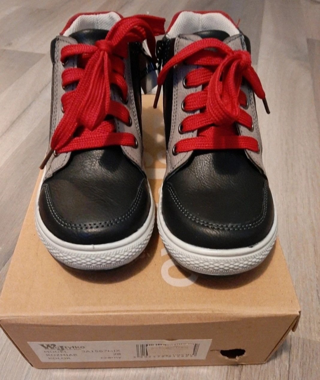 Nove, nenosene, s original stitkom, so zipsom na lahsie obuvanie, ortopedicka stielka. Farba je sedo-bordova aj snurky su bordove. Len to svetlo skreslovalo.
