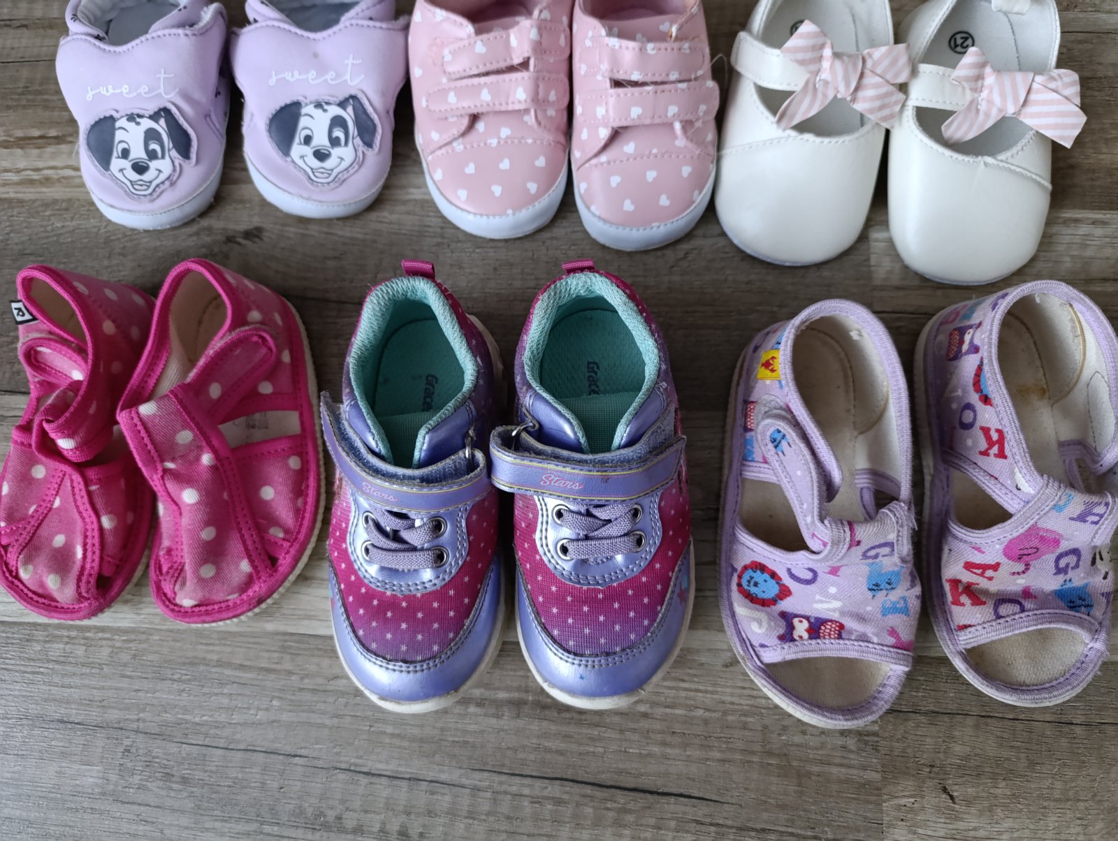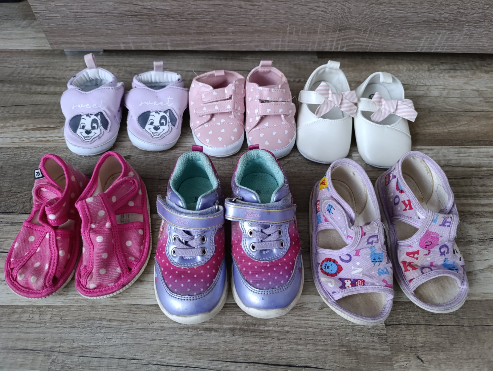 Fialové a ružové capacky veľkosť 19,capacky béžové nové veľkosť 21,ružové papučky rak veľkosť 20, fialové tenisky Deichmann veľkosť 22 a fialové papuče rak veľkosť 22...cena spolu