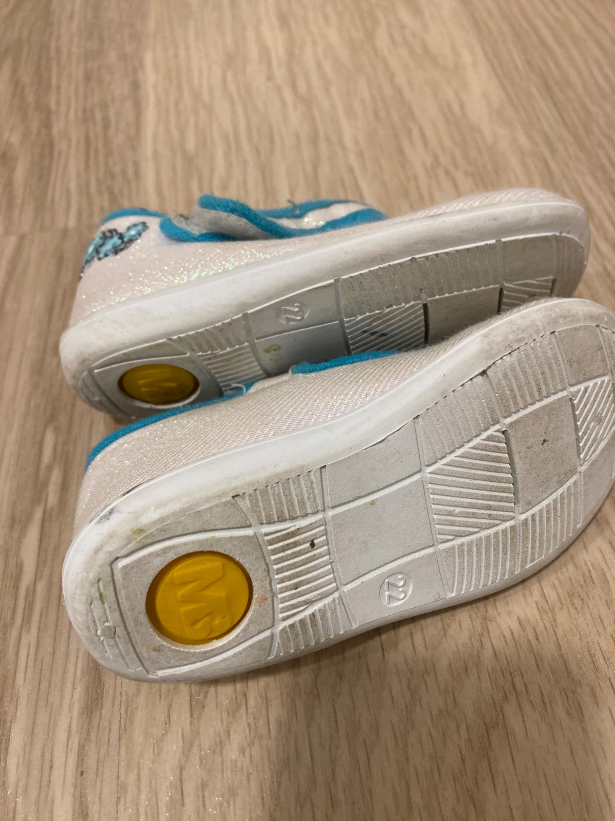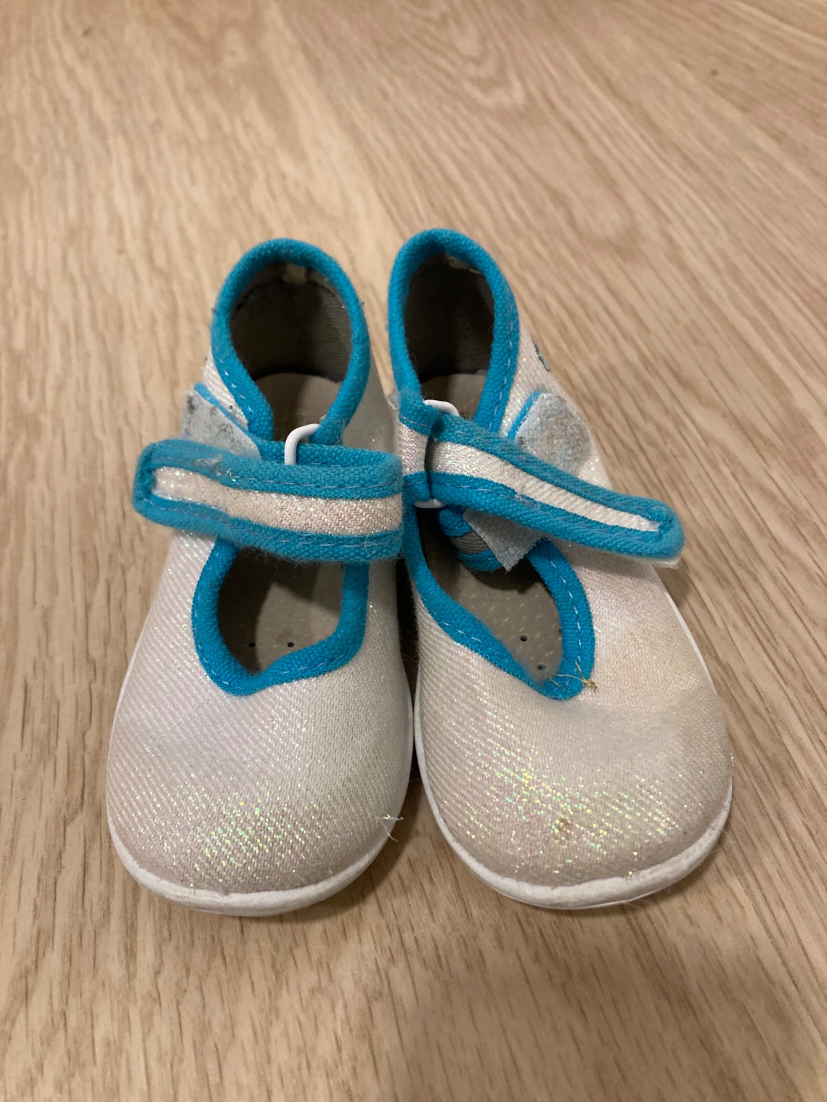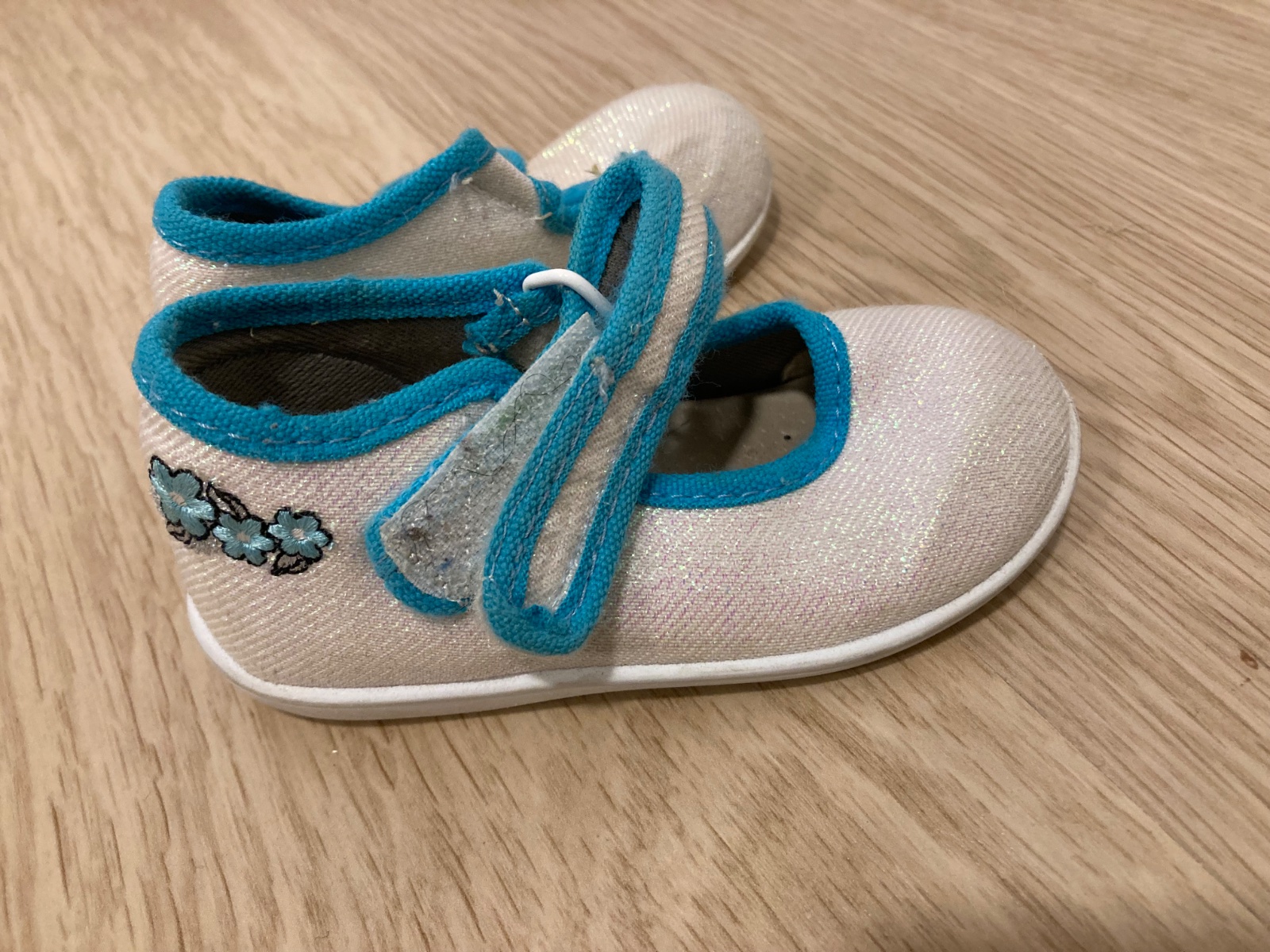 Sandále so zatvorenou špičkou. Nosene, ale veľmi pekný stav. Vnútorná stelka je z pravej koze. Veľkosť 22. Zapínanie na suchý zips. Vhodne aj ako papučky do interiéru.