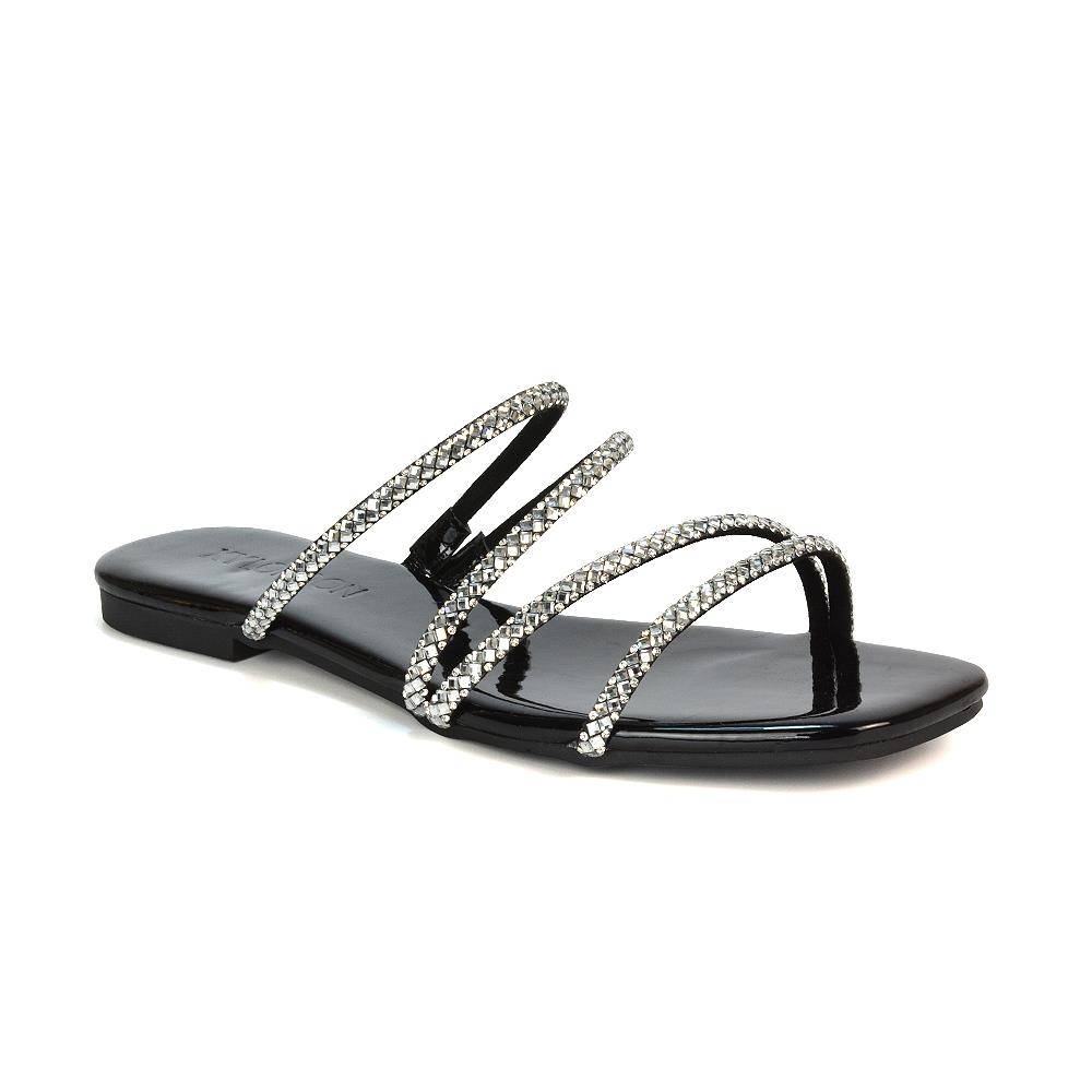 Krásne trblietavé dámske/dievčenské šlapky. Vyniknú na slnku alebo v interiéri s umelým osvetlením. Veľkosť: 36 Cena 12 EUR Značka: GINO ROSSI Farba: čierna so striebornými trblietavými remienkami ...