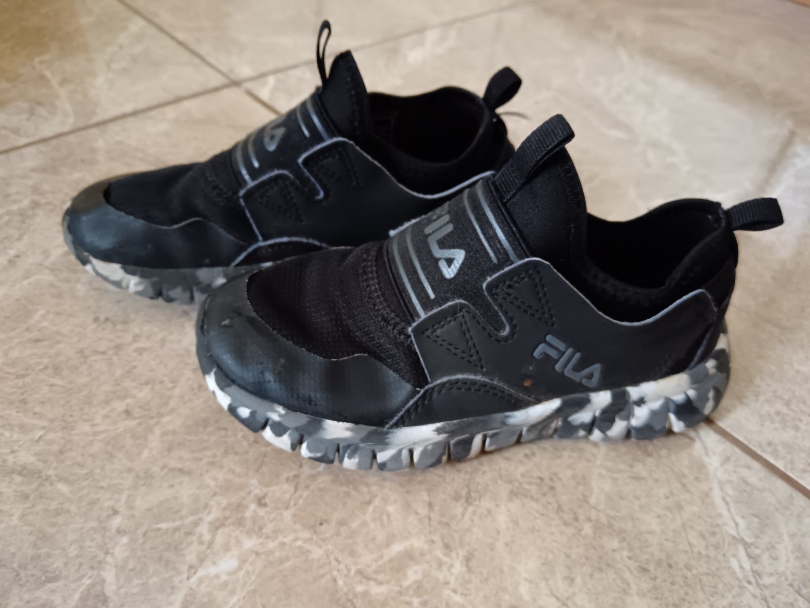 Posuvam uzasne lahulinke nasuchovacky zn. Fila. Velk 28. Syn ich miloval. Maju bezne znamky nosenia. Jedine, co som nasla, je koženka odlepena na pravej bote na prstoch na velkost prsta (vid foto). Urcite este posluzia.