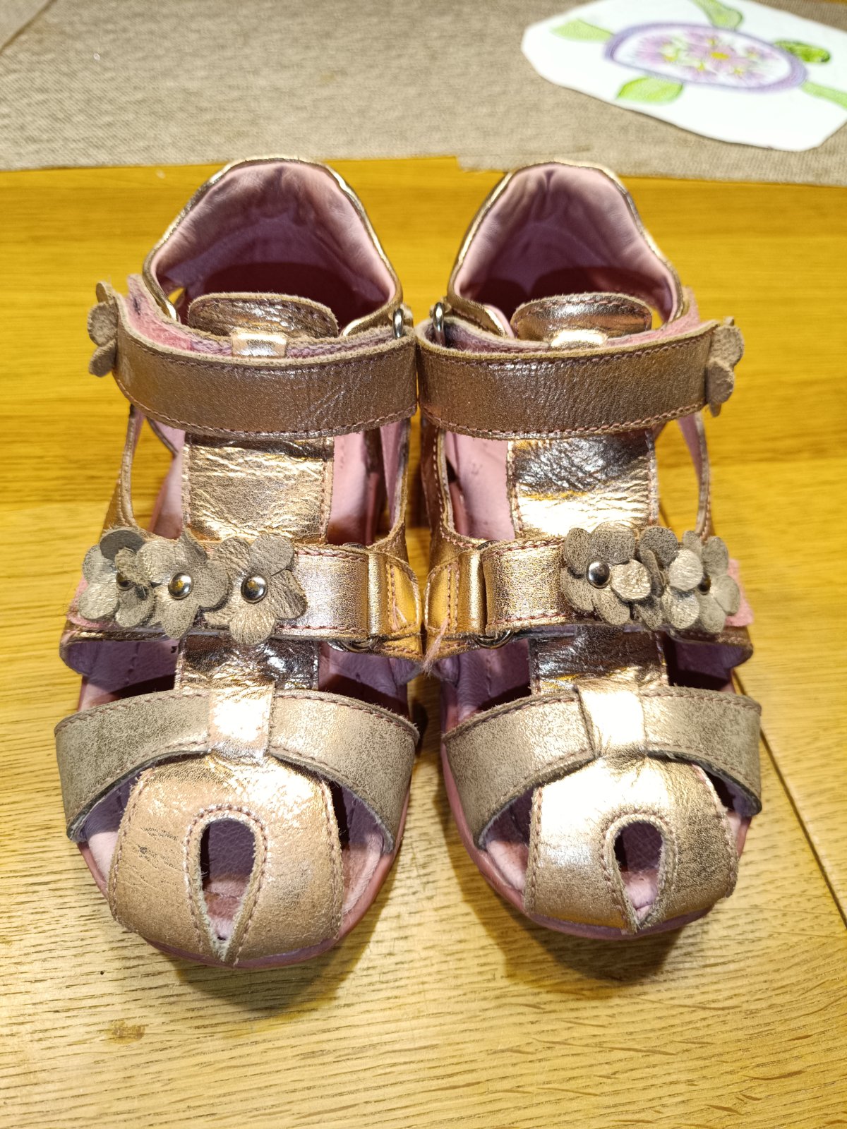 Medeno zlate sandale, dlzka 19cm,pohodlne, velmi pekne aj k satam aj kratkym gatiam