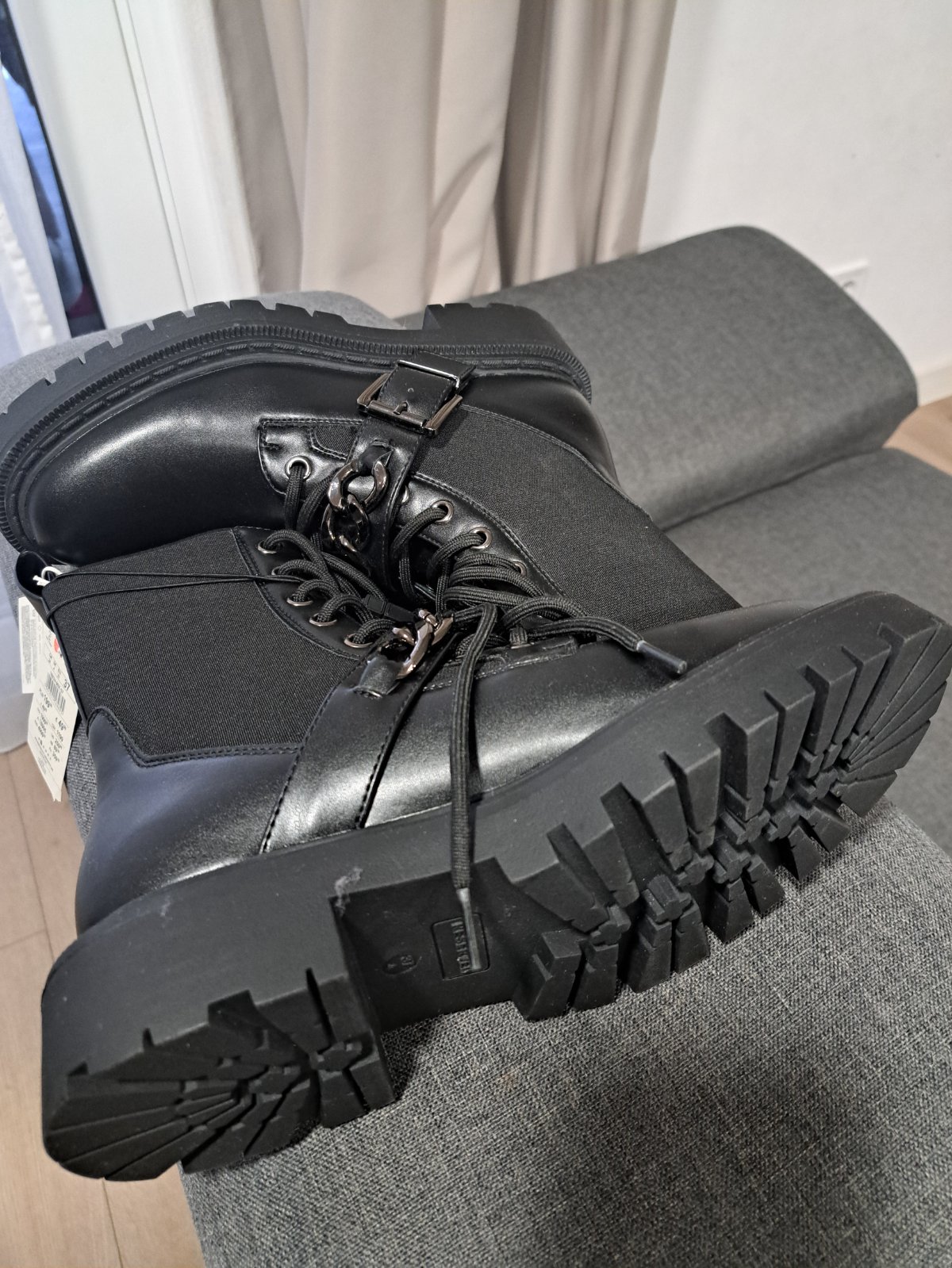 Perfektné kožené topánky, na vysokej podrážke, šnurovanie + zips, bez poškodení, nosené minimálne, asi tak 5-7x obuté PC: 70€