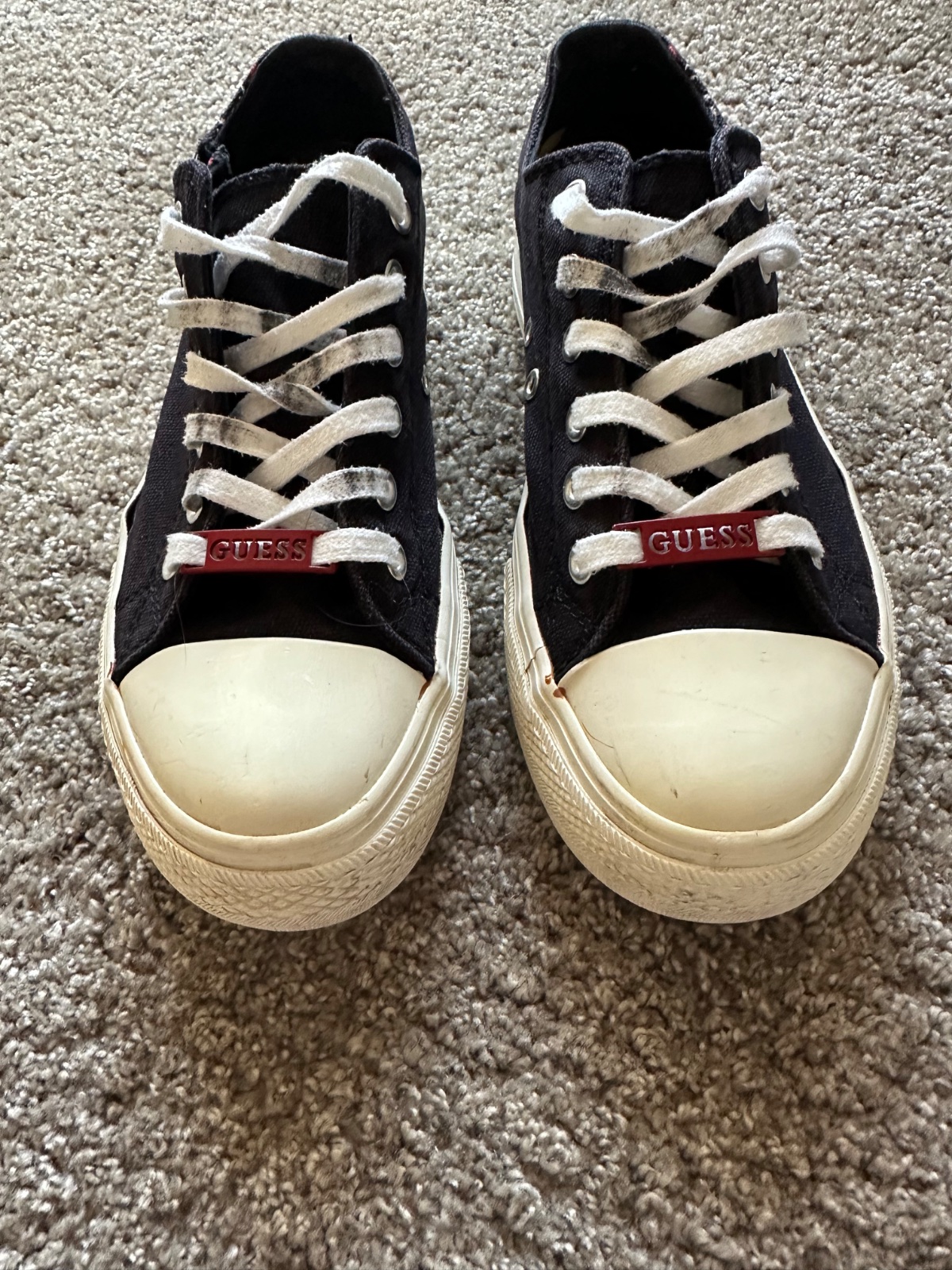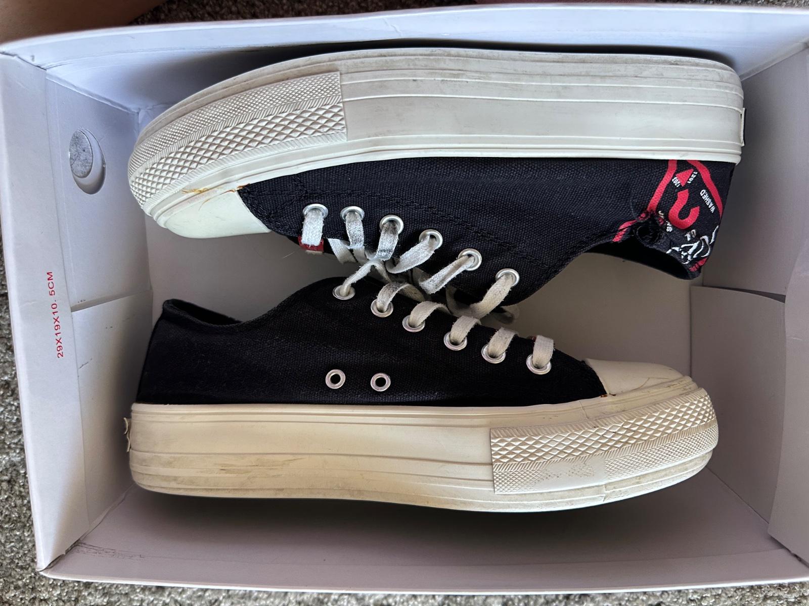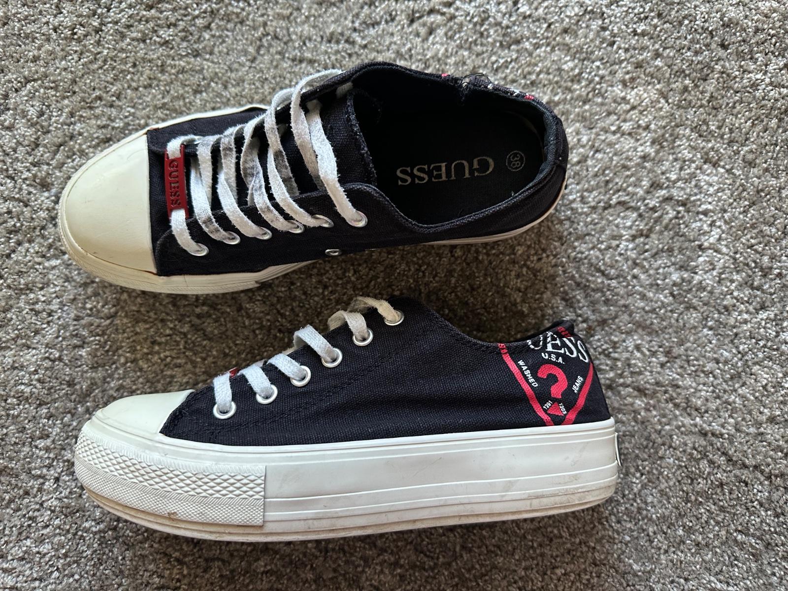 Tenisky na platforme. Velmi pekny stav, boli asi 4x na nohe. Vd je tych 23,5. Na jednej topanke mi syn trosku zastrihol zboku 🫠 - vid foto. Nic hrozne :)