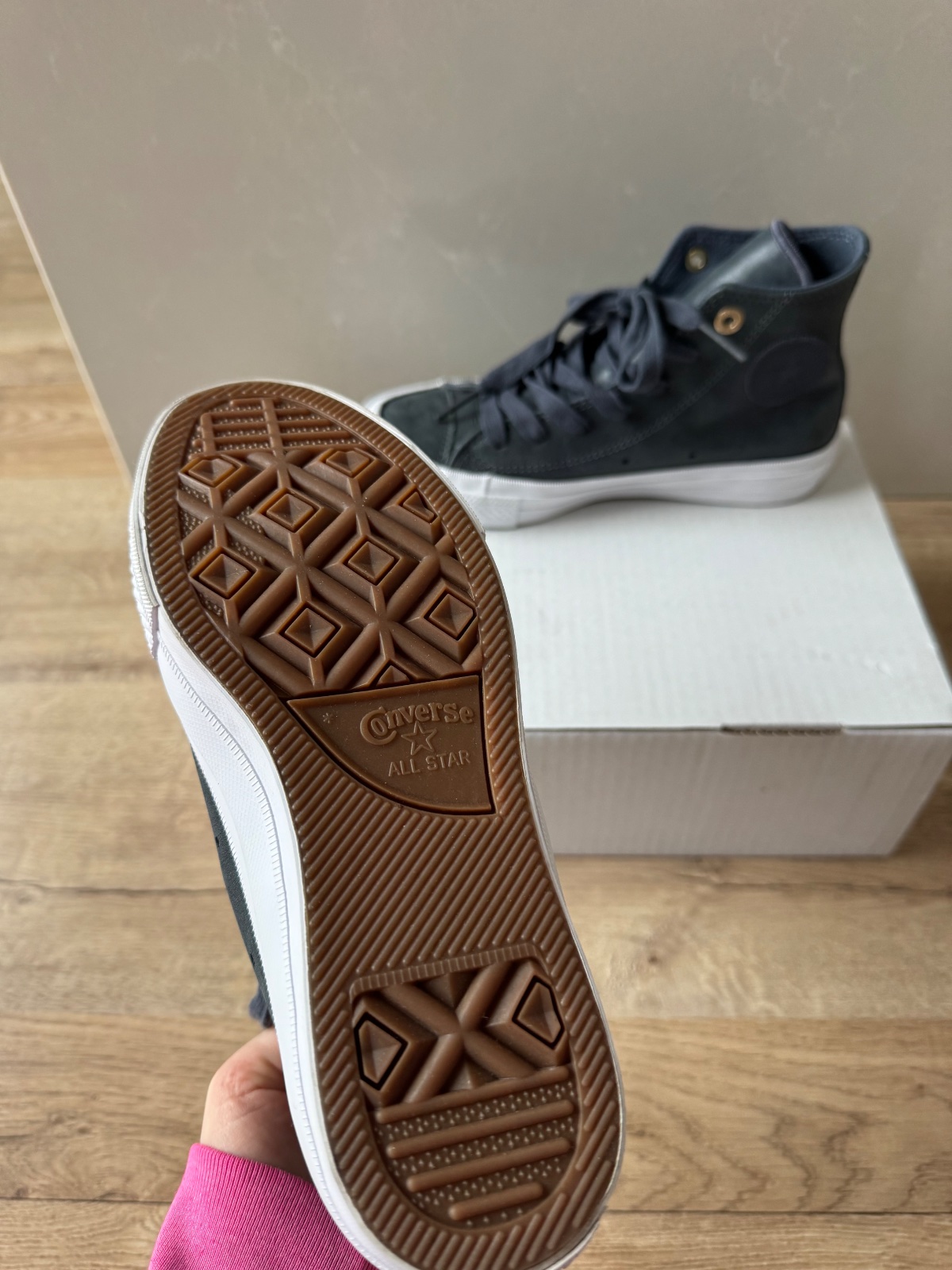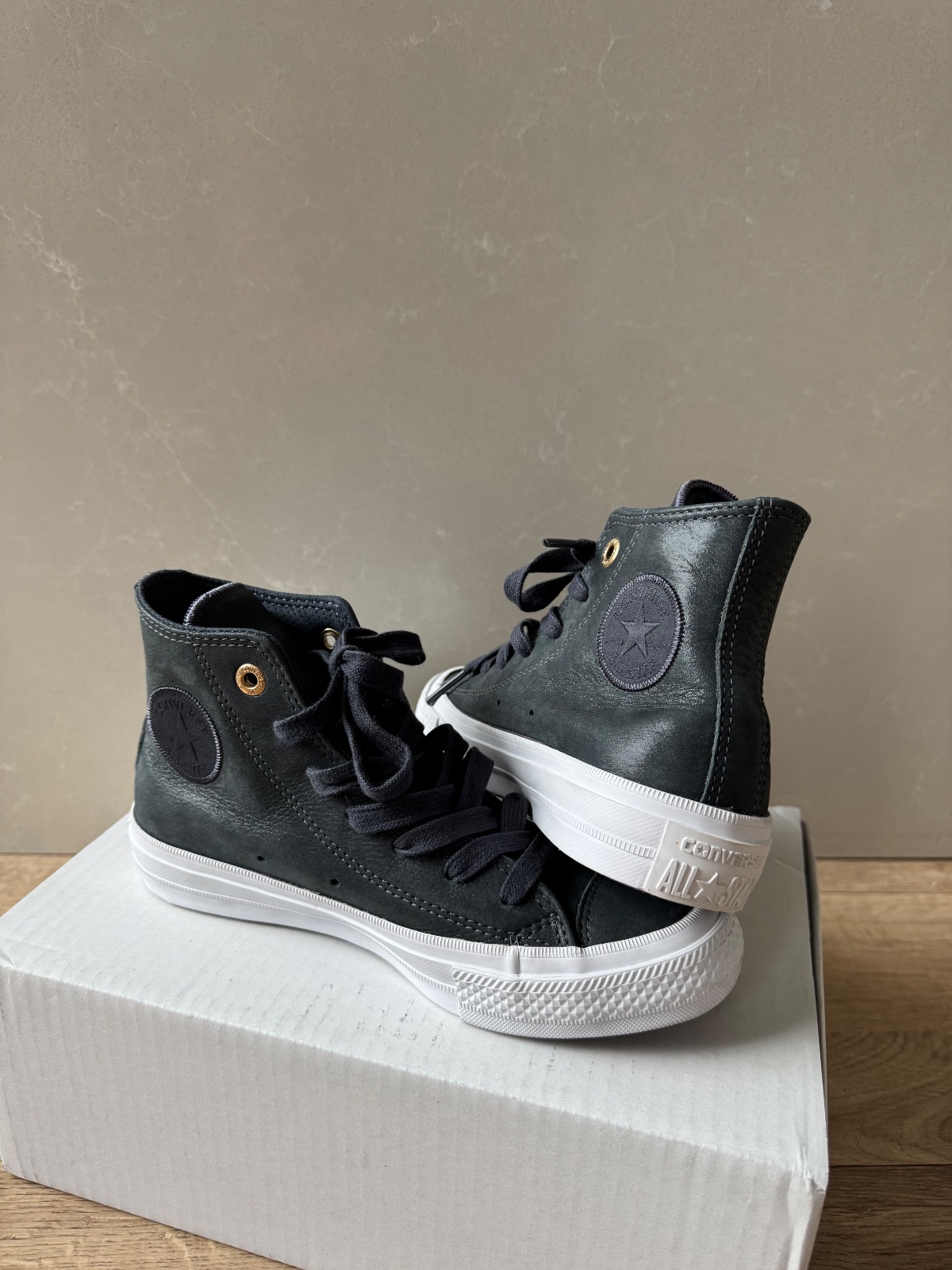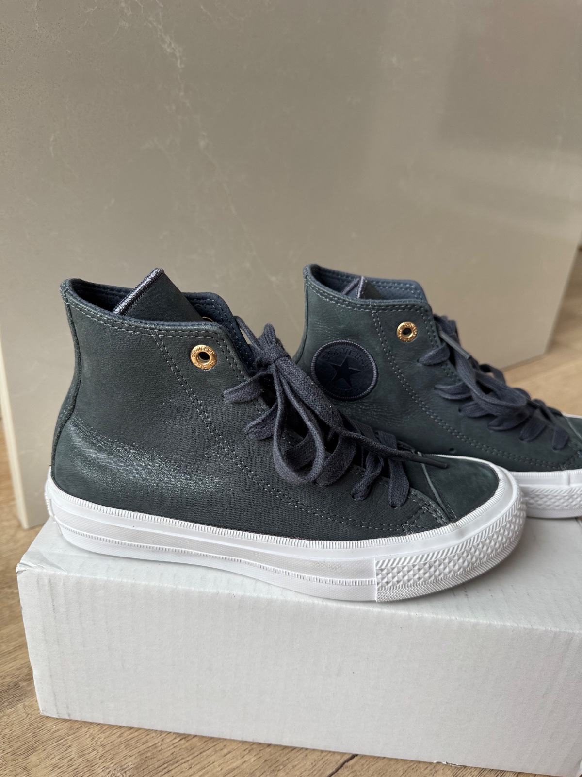 Predám tmavosivé vysoké tenisky Chuck Taylor All Star II HI materiál koža. Tenisky sú nové, nenosené.