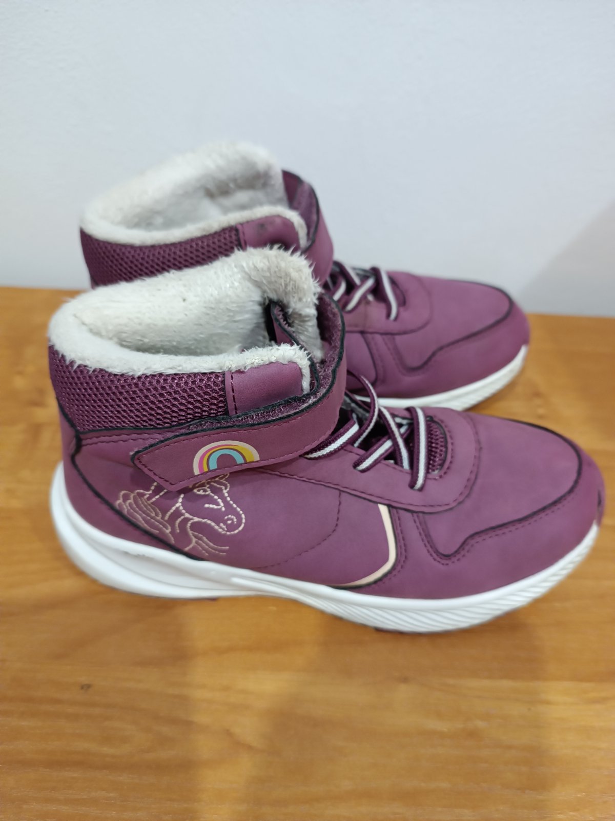 Nosené jednu sezónu, výborný stav, neokopané, nezošúchané, teplučké. Cena je nízka lebo mám už plnú skriňu topánok ktré sú už deťom malé a potrebujem to už posunúť. VN.d 21cm Pc: 93€