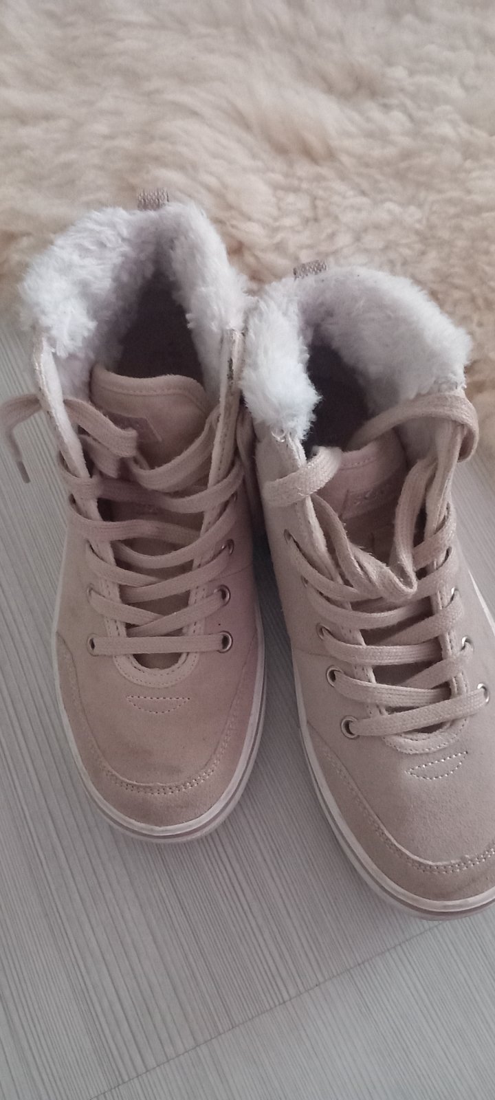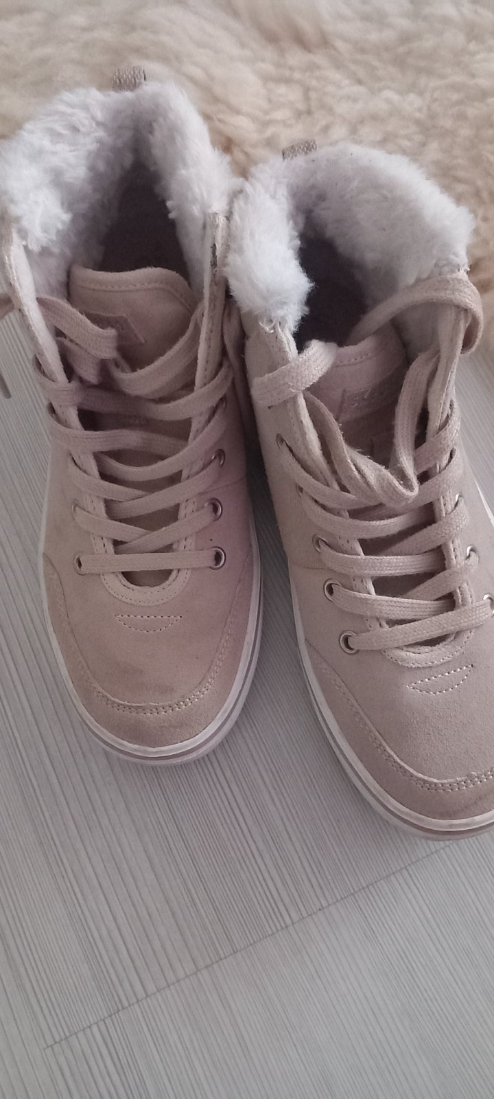 Krásne bledohnedé alebo béžové tenisky , vyteplené kožušinkou, super stav, cena bez pošty.