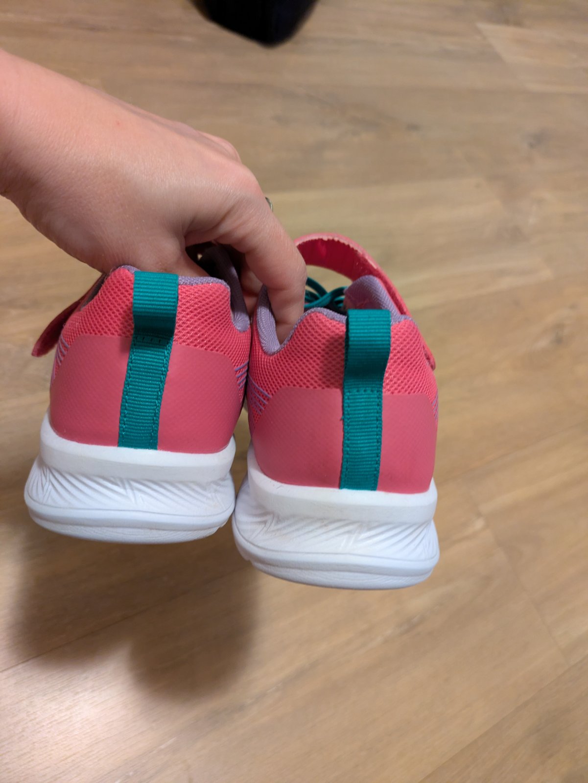 Ľahučké tenisky na suchý zips. Už majú nejaké chybičky, ale nič strašné. Ideálne na telesnú. Vnútorná dĺžka 22cm. + poštovné