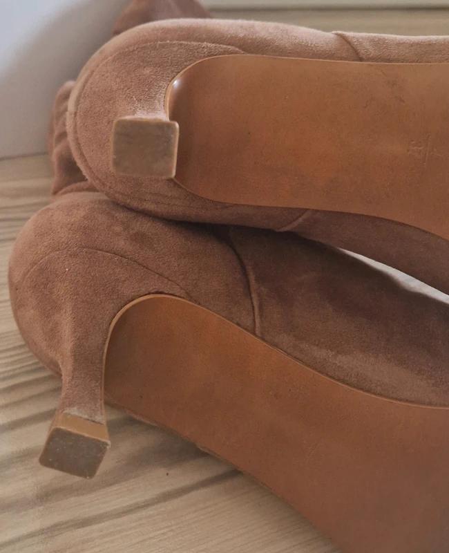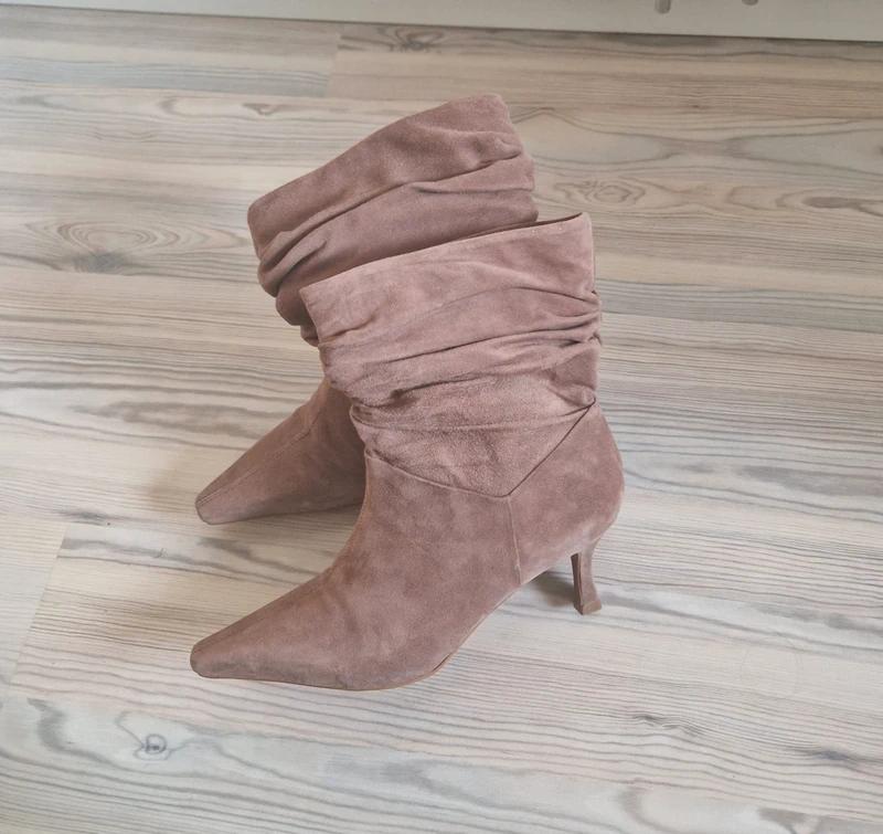 Výborný stav, bez známok opotrebovanosti, obuté 2x. Viď foto. Kvalitné nízke semišové kotníčky z Next. Pravý semiš. Veľkosť 37. Dezinfikované. Výška podpätku 6cm.