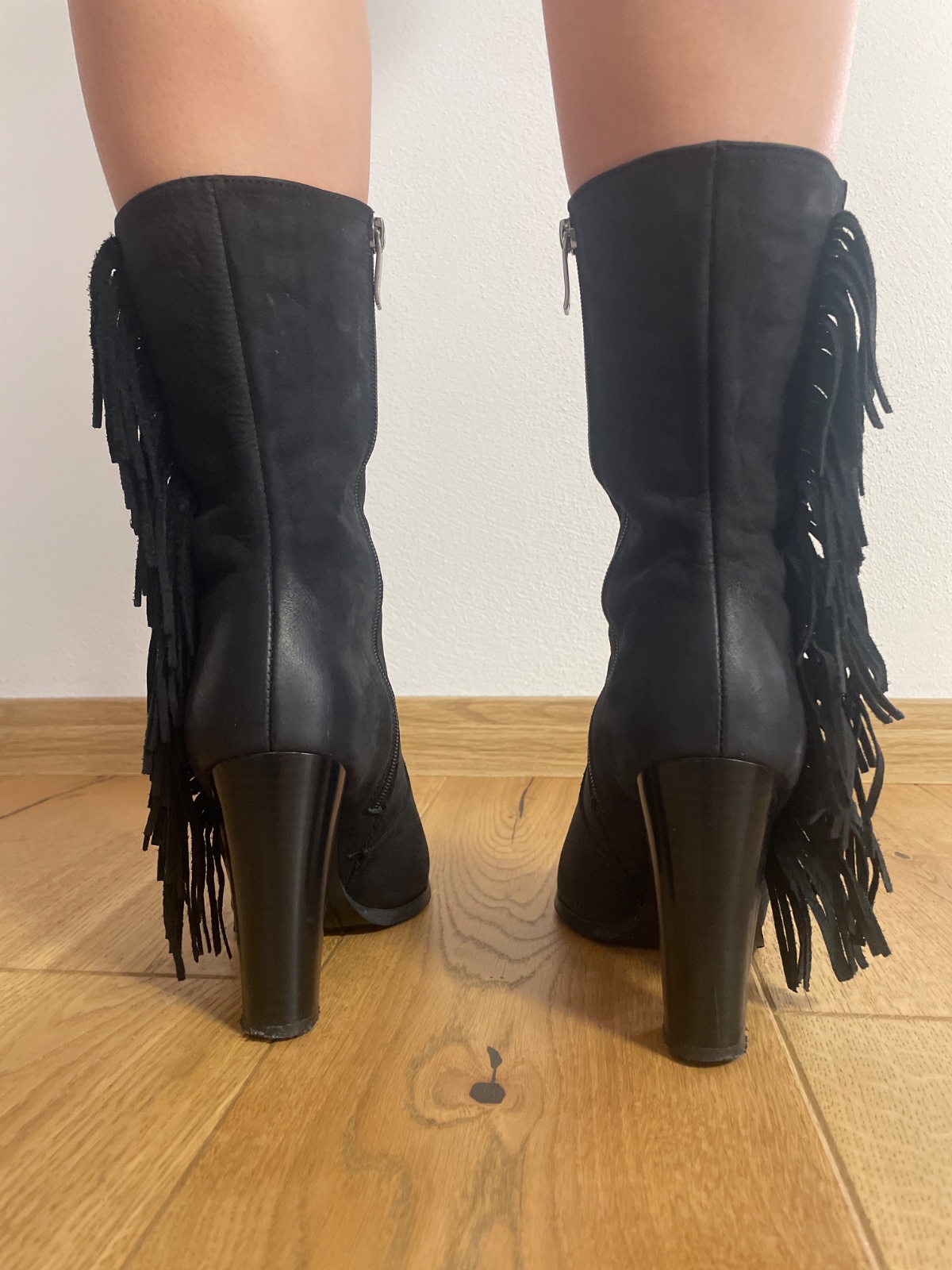 Krasne znackove kozene cizmicky Tamaris, velkost 39, vyska opatku 8 cm, cierna koza, parkrat obute, dovoz UK.