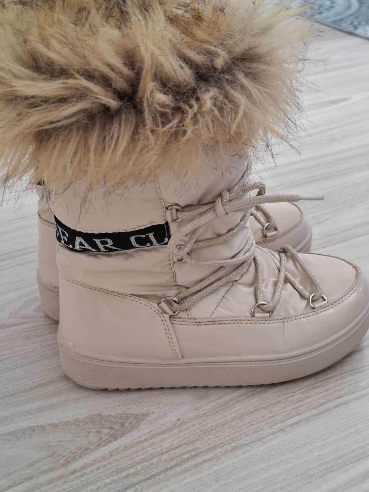 Detská obuv zimná od značky APAWWA nová s visačkami, ľahko sa obuva vdaka zipsu zboku topánočky, farba béžová, materiál výrobca udava PU - čo je syntetický materiál používaný ako náhrada pravej kož...