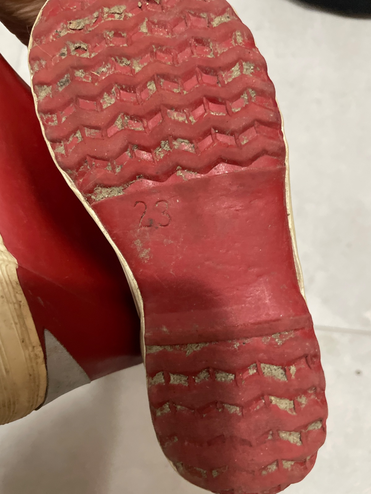Krasne gumaciky- nove, s visackami, avsak maju na vrchu male poskodenia (vid foto). Velkost je uvedena EUR23. Rozmery: celkova vonkajsia dlzka: 16cm, vnutorna dlzka: 14,5cm
