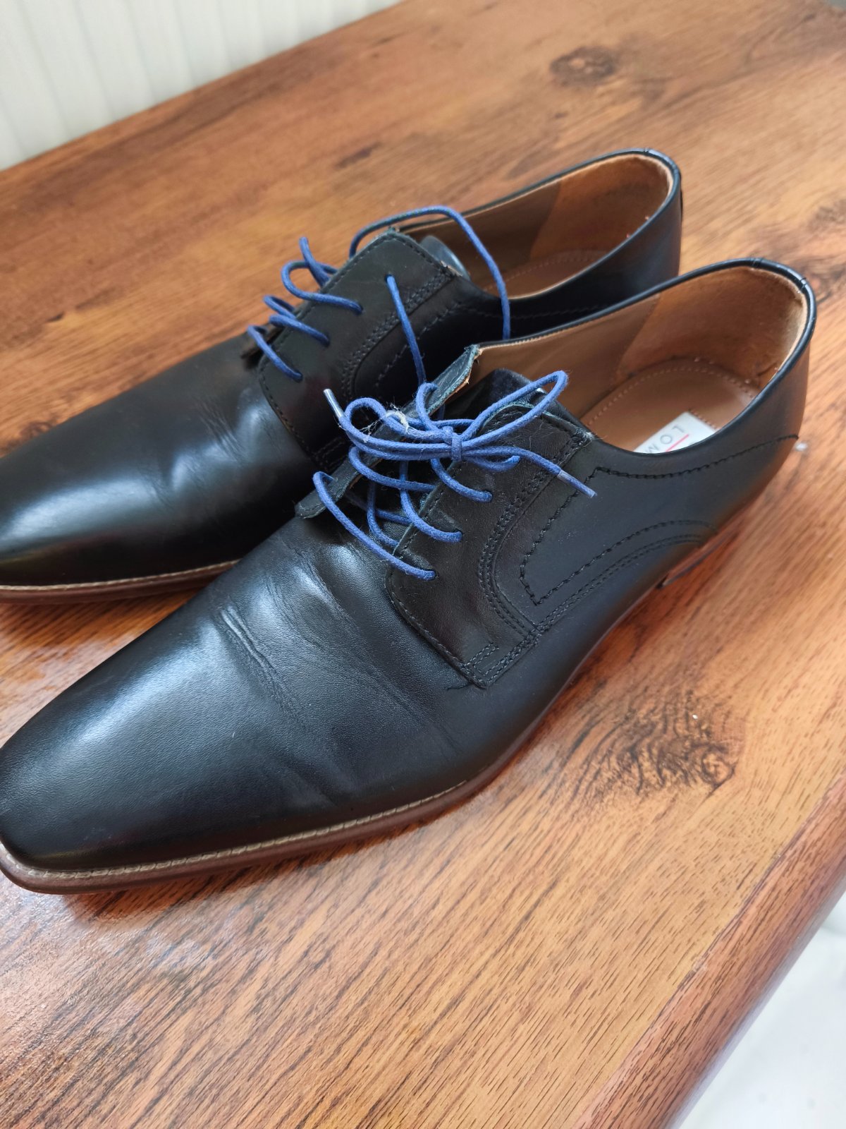 čierne topánky pre jednoduchého nenáročného muža, veľkosť 45, sú zachovalé ale vidno nosenie, poškodenia nemajú nijake iba troska skrabance, ktoré z dialky nevidno, iba ked sa niekto zblizka pozri...