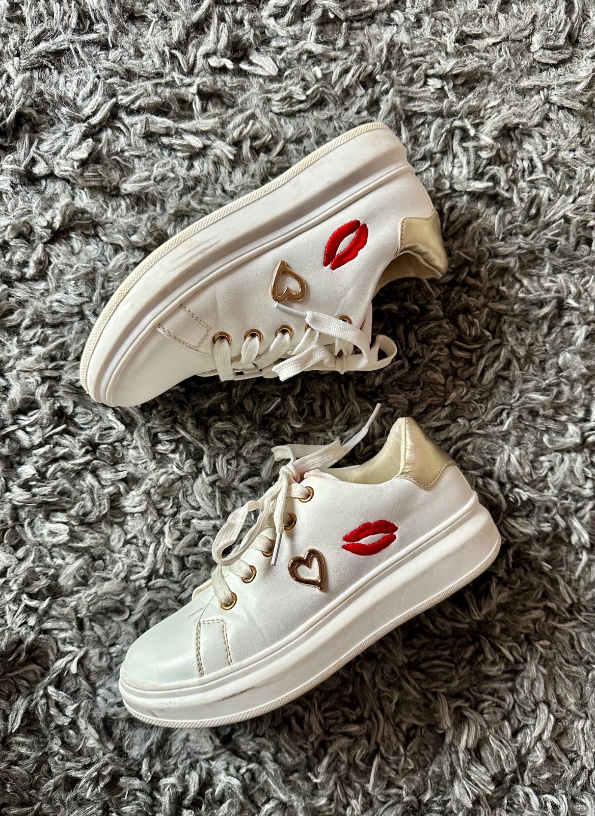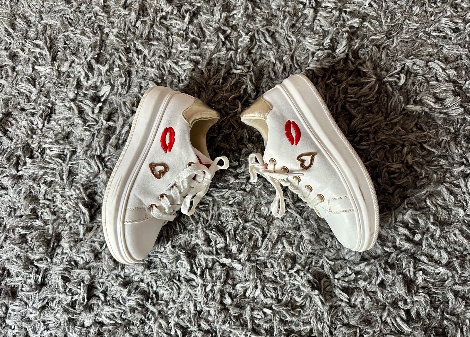 So srdiečkami a zlatými detailami. Mám 2 páry, málo nosené. Vn. dlžka 21-21,5 cm. 4 e par.