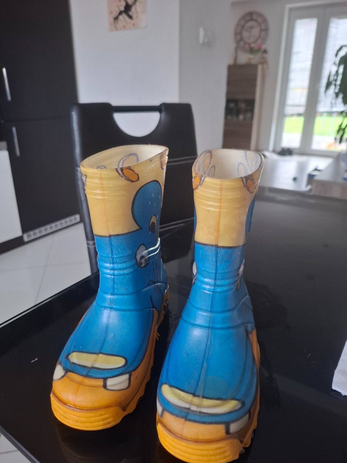 Nosené, stále v dobrom stave Majú vnútornú vyberateľnú vložku, ľahko vyberateľná, dá sa ľahko oprať. Gumáky sú ľahučké. V:26/27