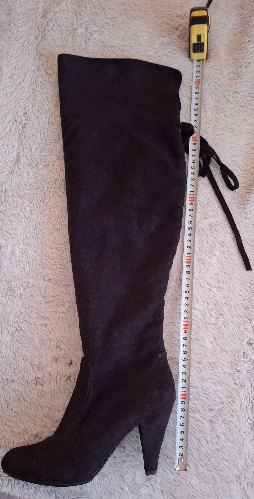 Podpätok 9cm, výška skoro 64 cm, obvod sáry v najširsom mieste 2x20cm.