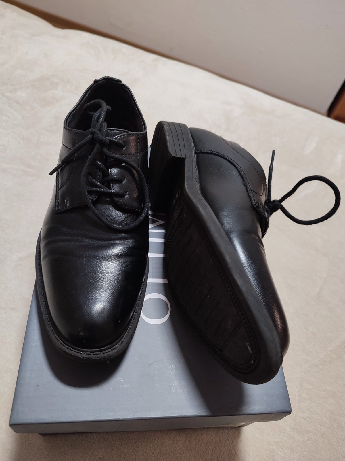 Obuv je vo veľmi dobrom stave, nie sú zošuchané alebo ošľapané, boli obuté zopárkrát. Na jednej z nich sú v predu na špici 2 jemné šmuhy ošuchnutia, čo sa synovi akosi "podarilo", ale inak nemajú ...