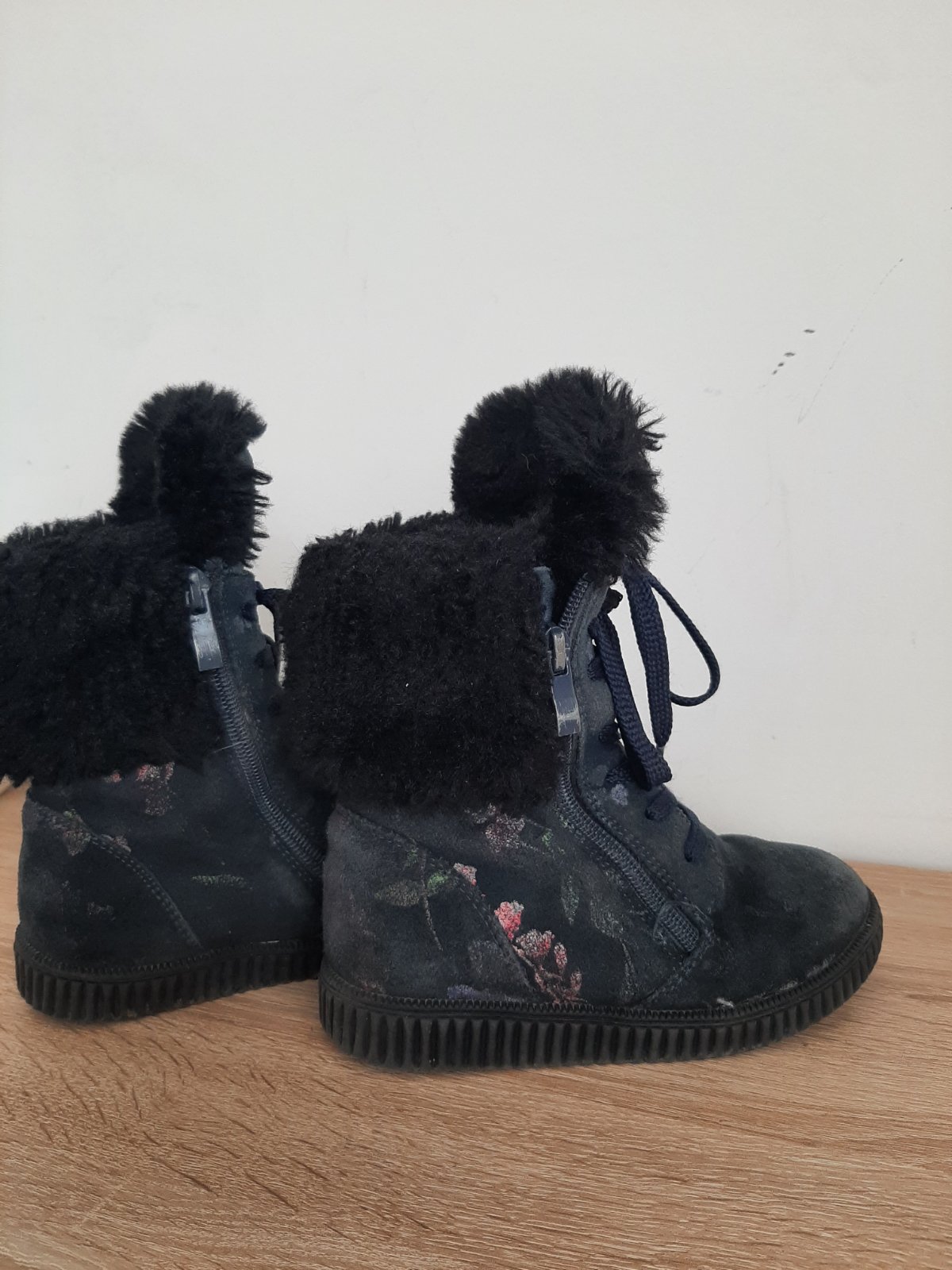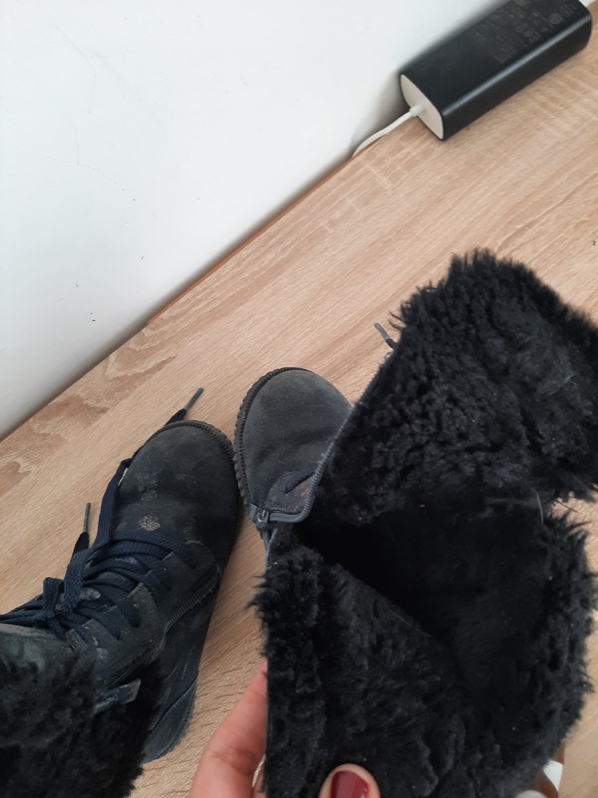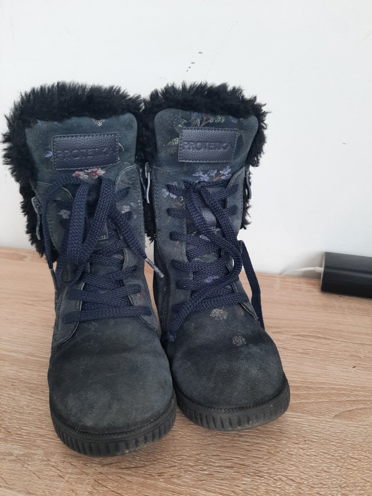 Velmi teplucke, kozene, tmavomodre s potlacou, zimne topanky - Protetika. PC okolo 70e.
