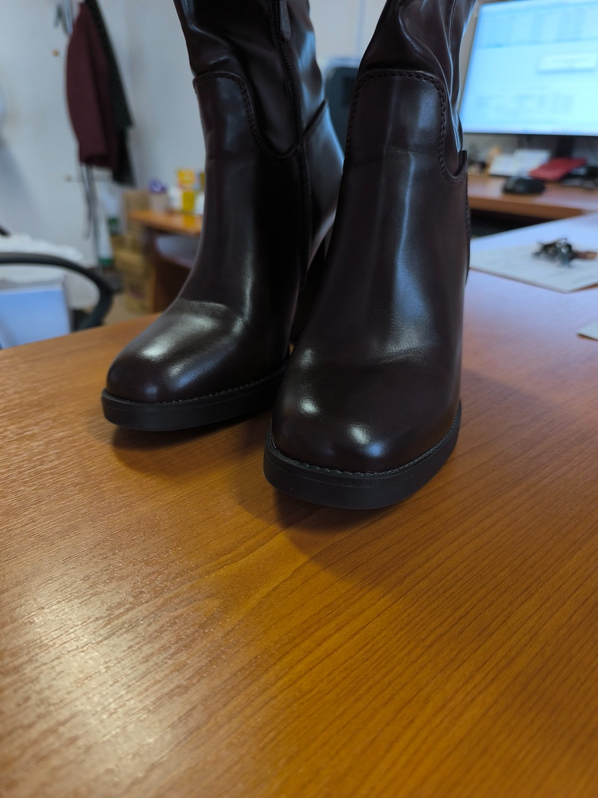 Dvakrát obuté čižmy, na mňa vysoké aj napriek platforme. Takže skoro úplne nové, zateplené. Na veľ. 36;aj sedia.