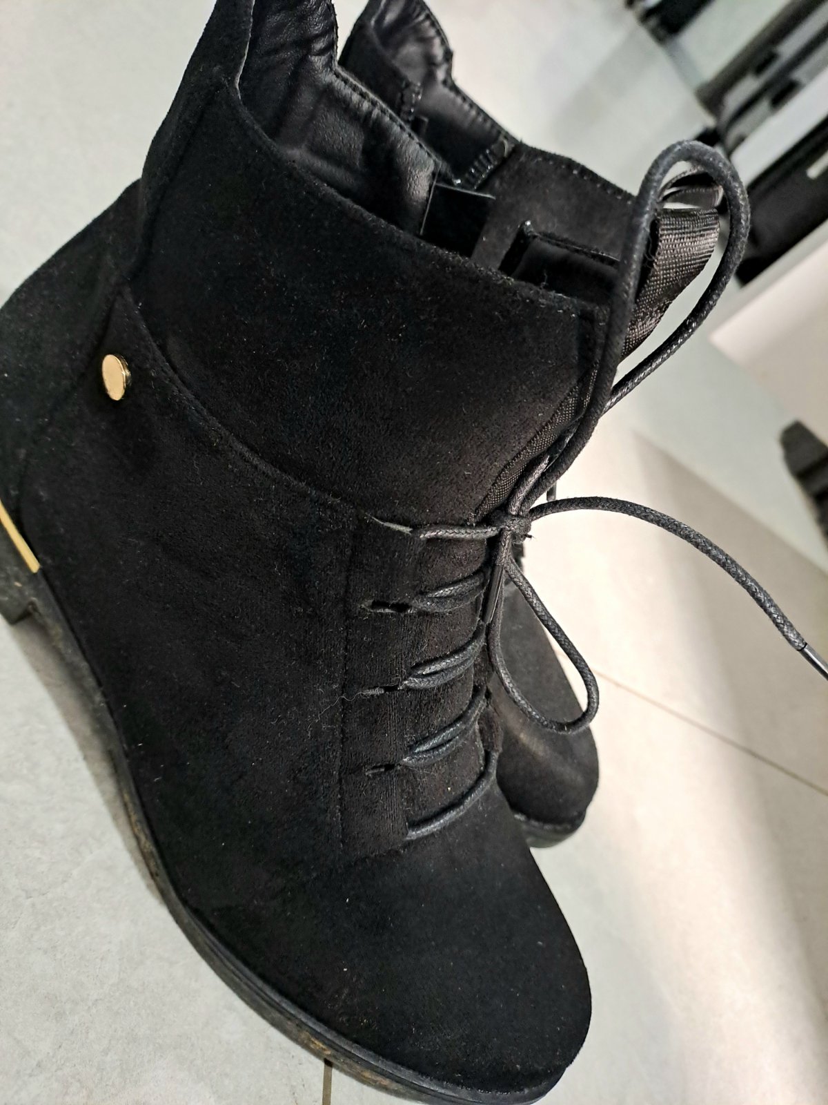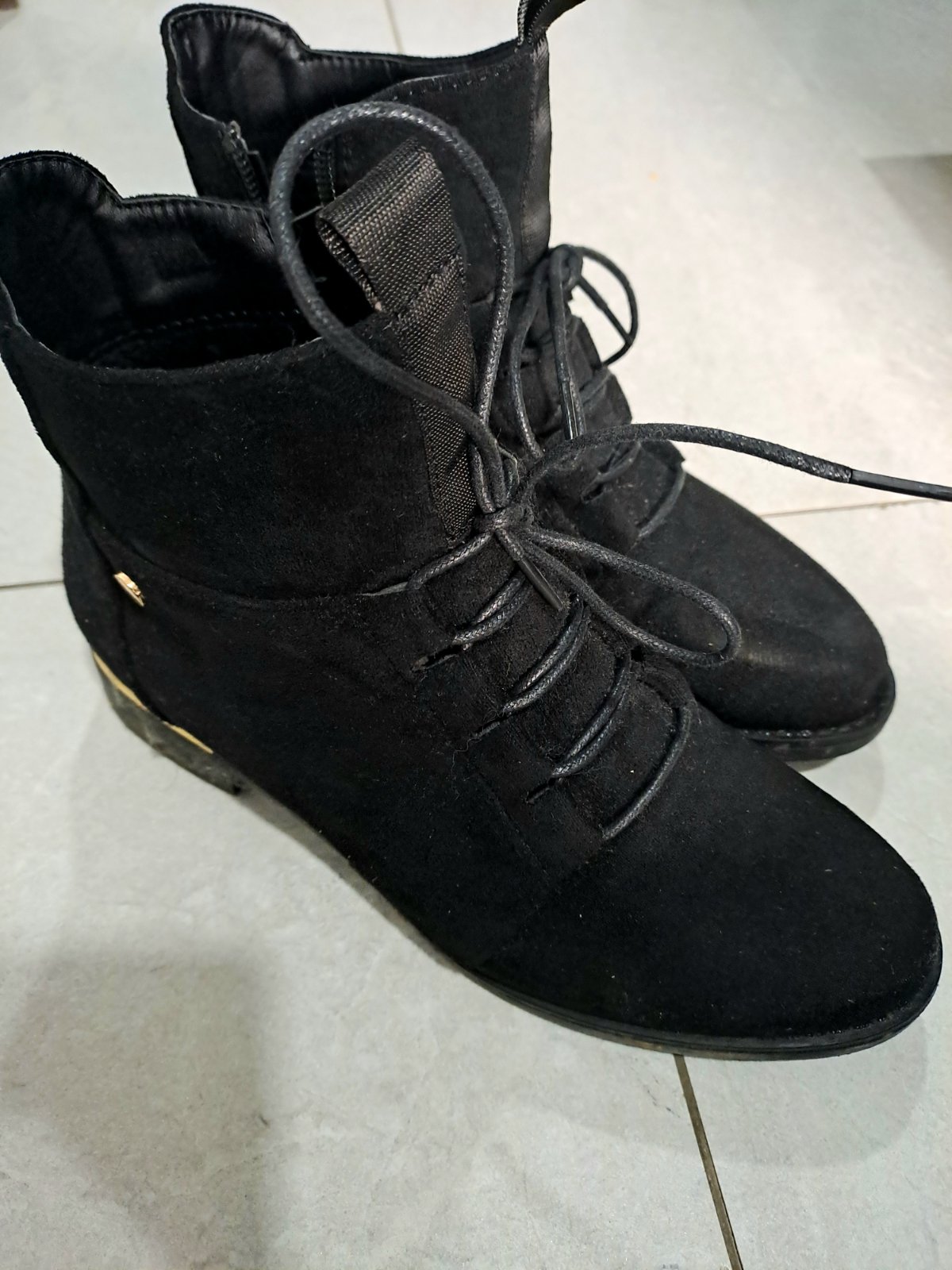 Krásne prechodné topánky. Čierne, zlaté aplikácie na opätku. Šnúrky aj bočný zips. Veľmi pekné, pohodlné. 3x vzaté, ako nové. Veľ. 37 (sedí).