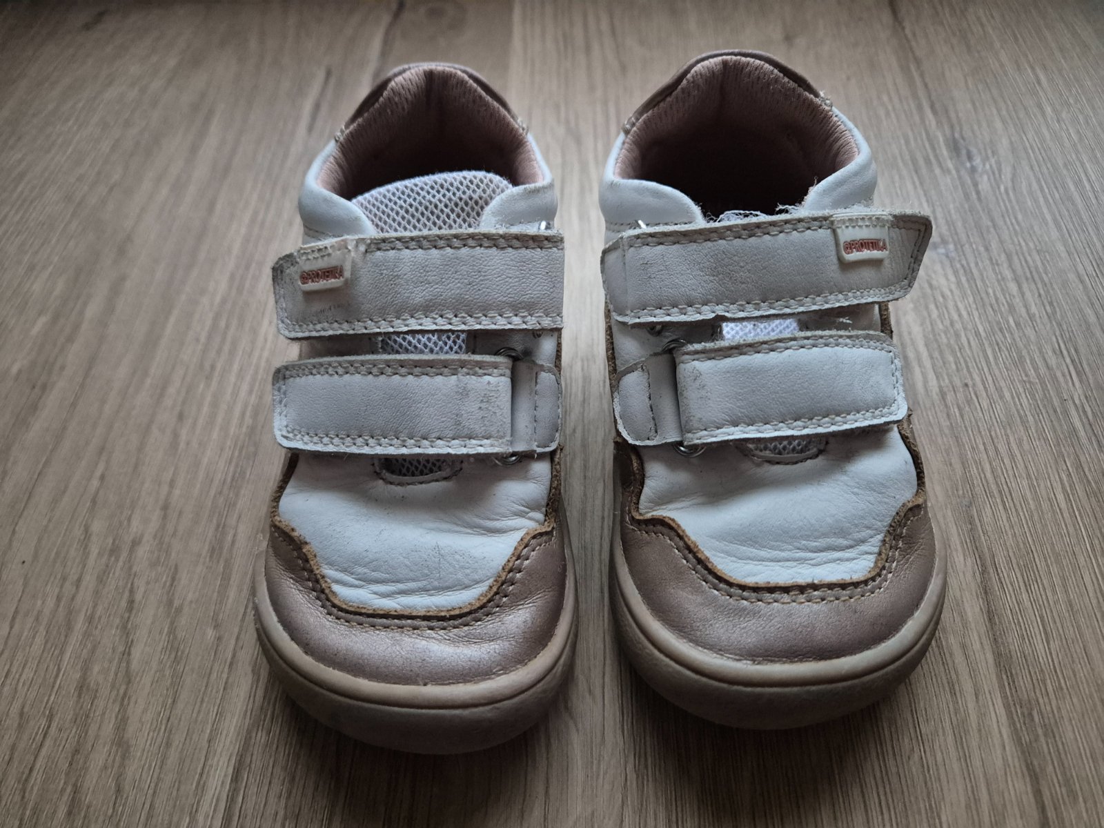 Nosené na striedavo len jednu jar a leto. V krásnom stave, na suchých zipsom hat v okolí členkov trocha škrabance. Su barefoot, biele s jemnou ružovou perletovou farbou. Pekne sa dajú zladiť aj šatám. PC 45 €