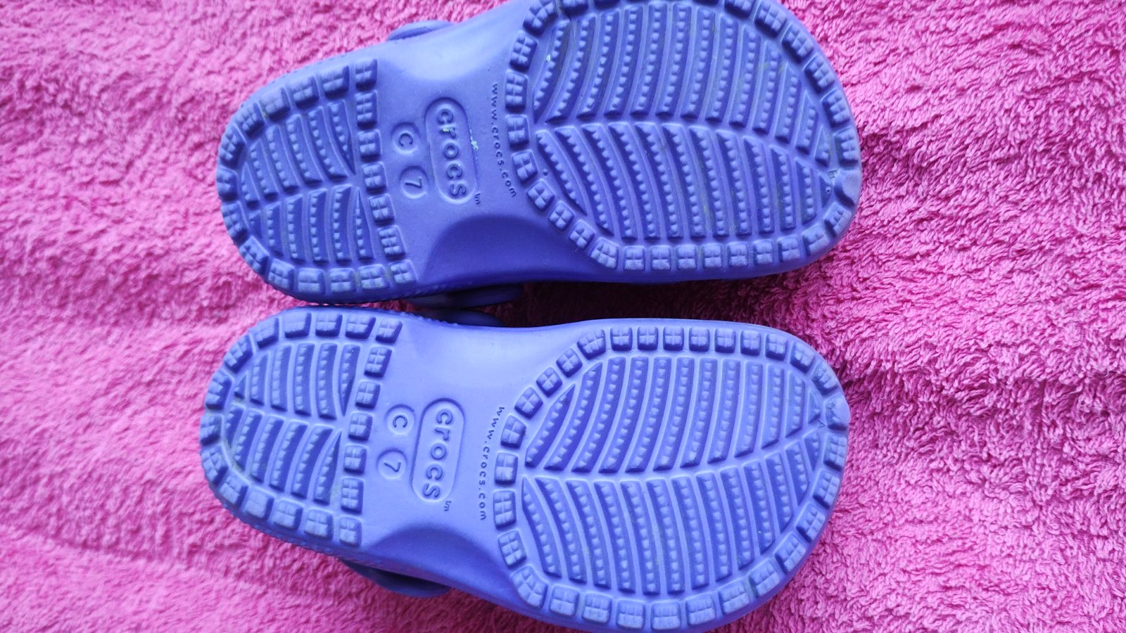 Zachovalé Crocs veľkosť C7, to je u nás 23-24. Sú bledsie ako na fotke. Nie sú vyblednuté ale nie tak výrazné.