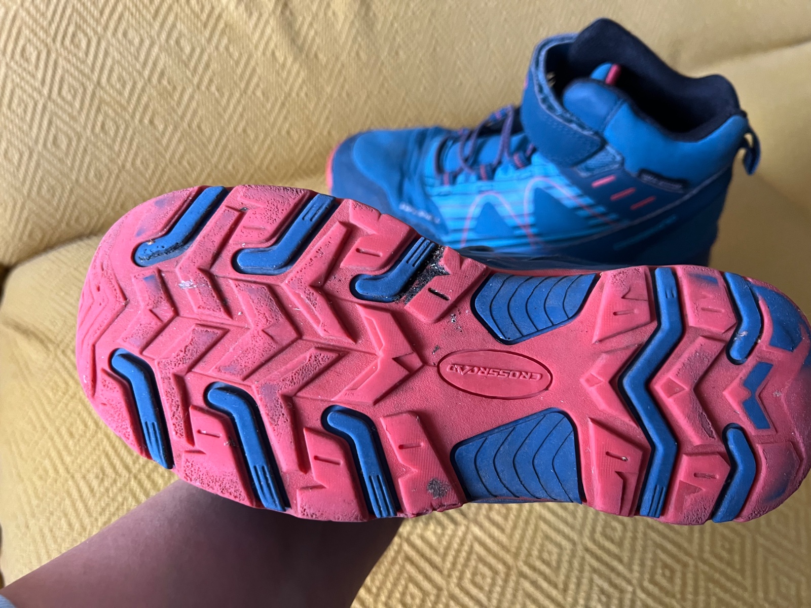 Pevne topanky, vhodne aj na turistiku. Bez poskodeni. Bezne znamky nosenia. Chybicky pofotene. Vnutorna dlzka 22,5 cm Kupovali sme ich uz aj v mensich velkostiach a boli sme s nimi mimoriadne spok...